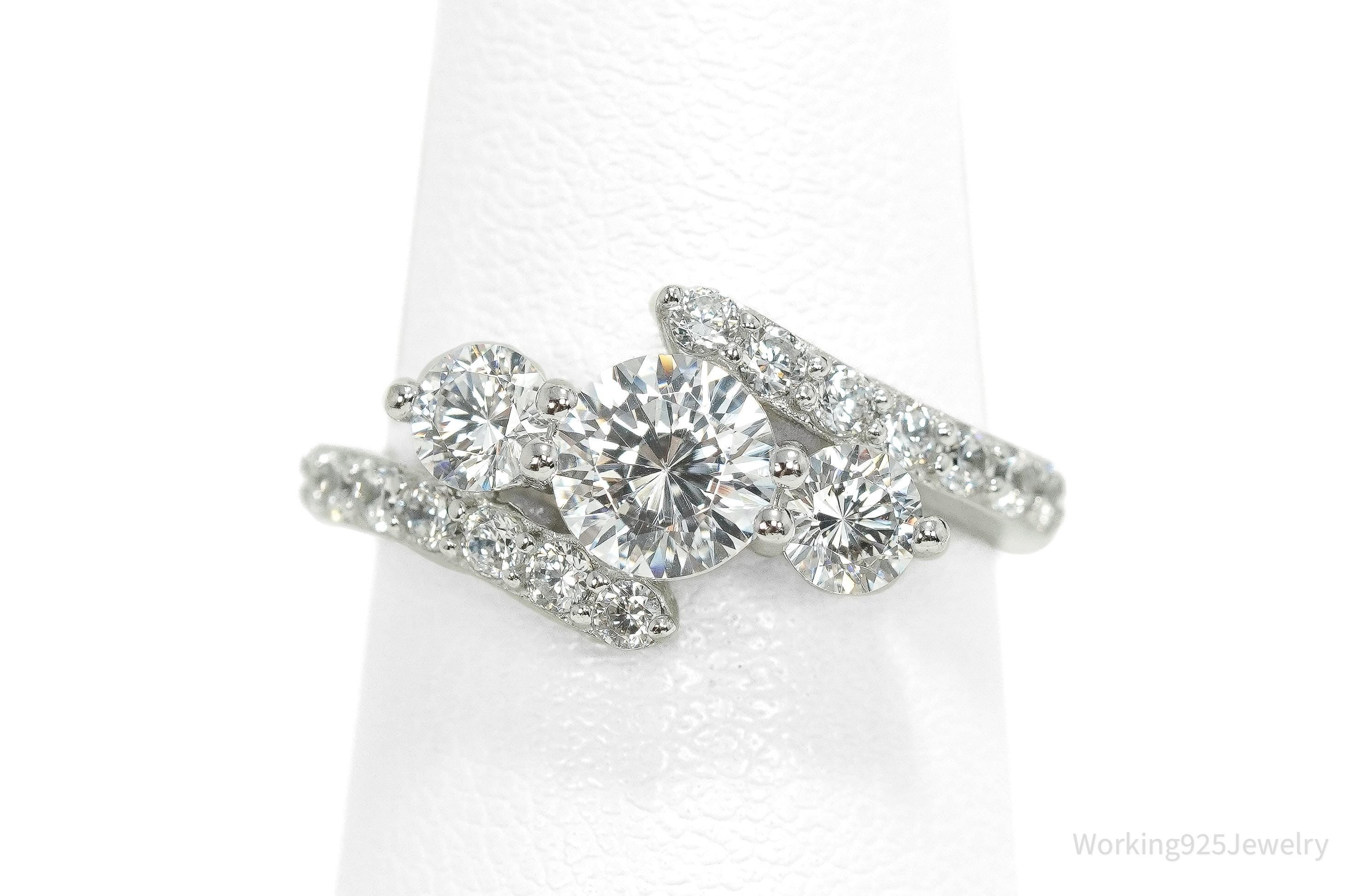 Vintage Designer Cubic Zirconia Sterling Silver Ring Size 7.75