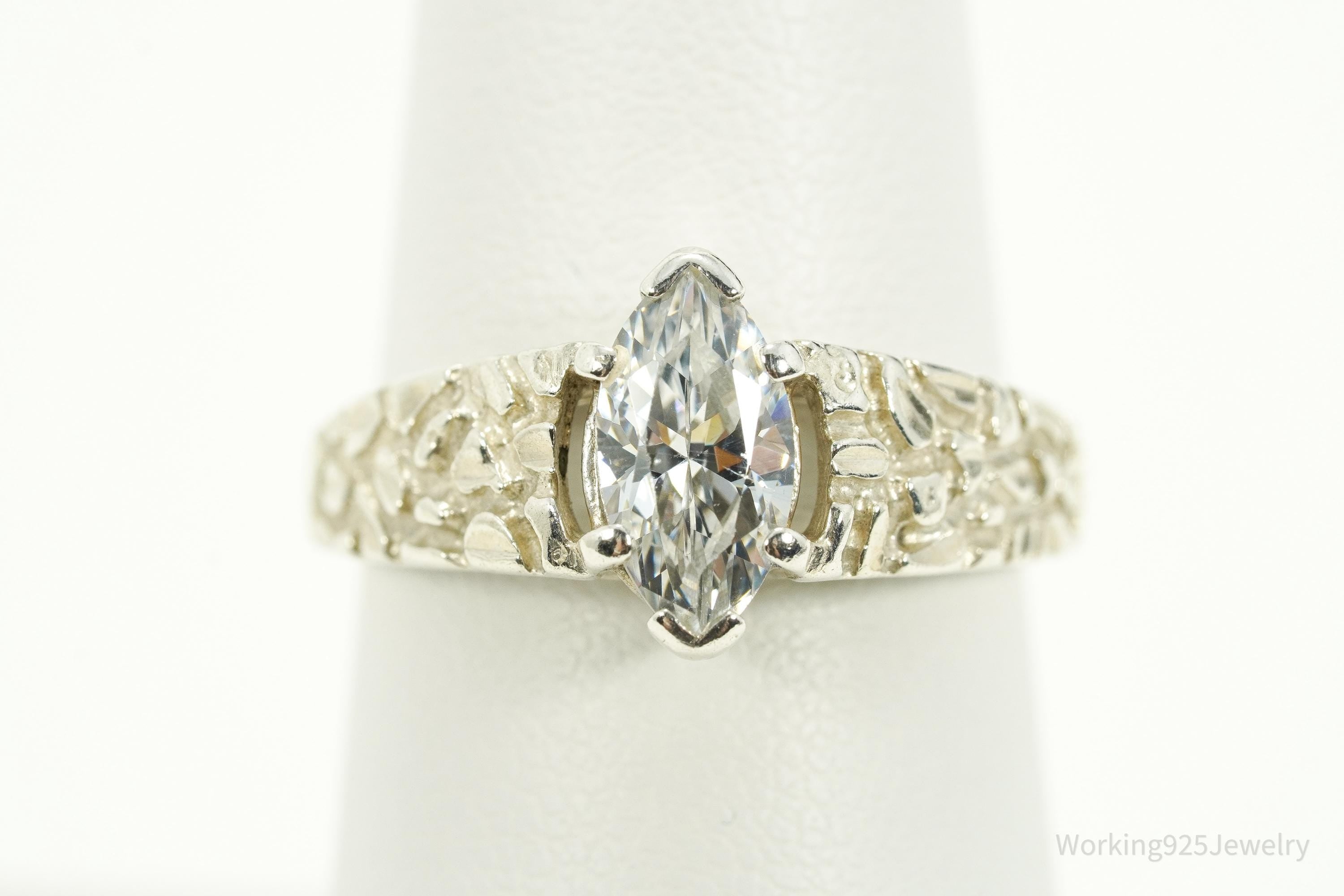 Vintage Cubic Zirconia Sterling Silver Statement Ring - Sz 7.5