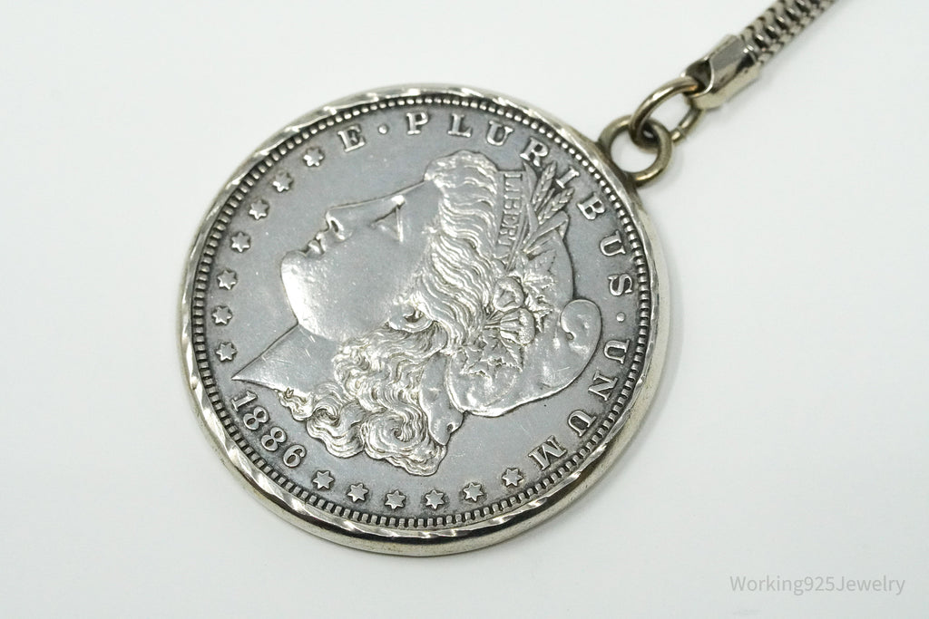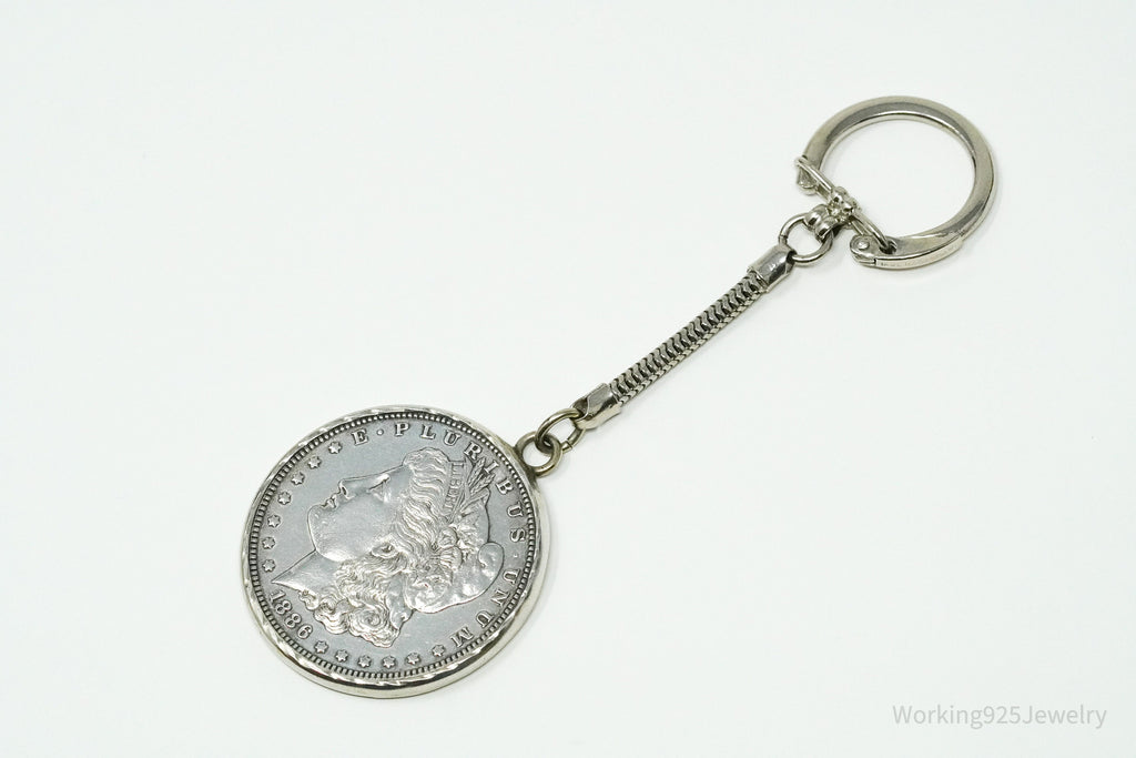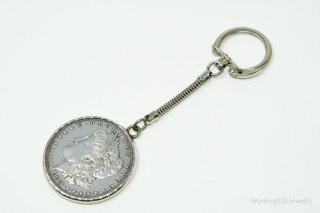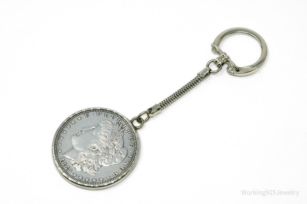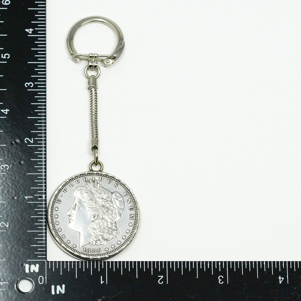 Antique 1886 Morgan Silver Dollar Coin Sterling Silver Keychain