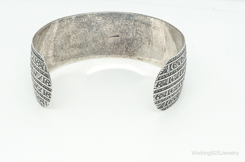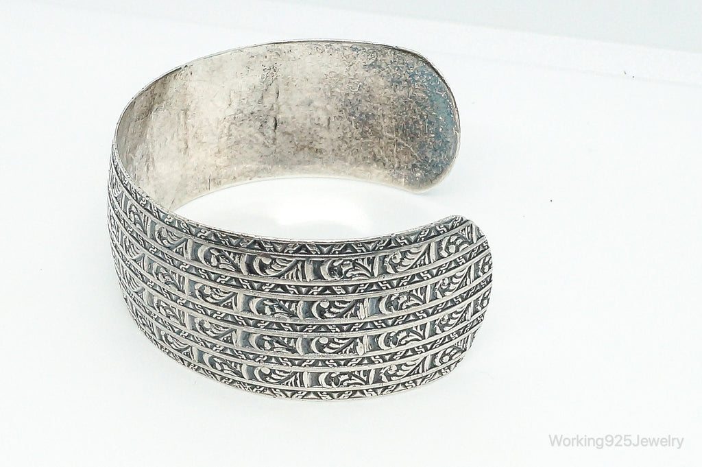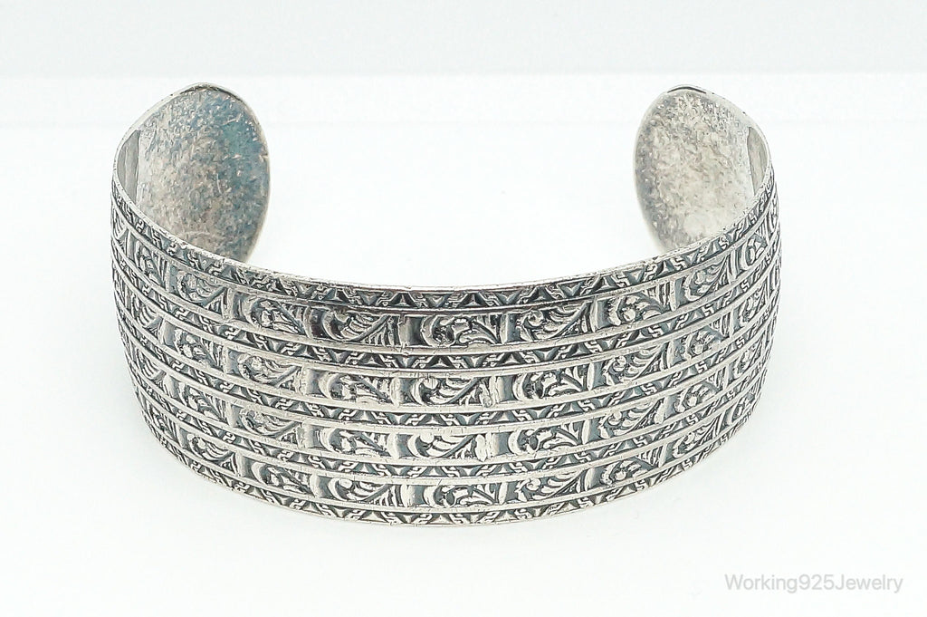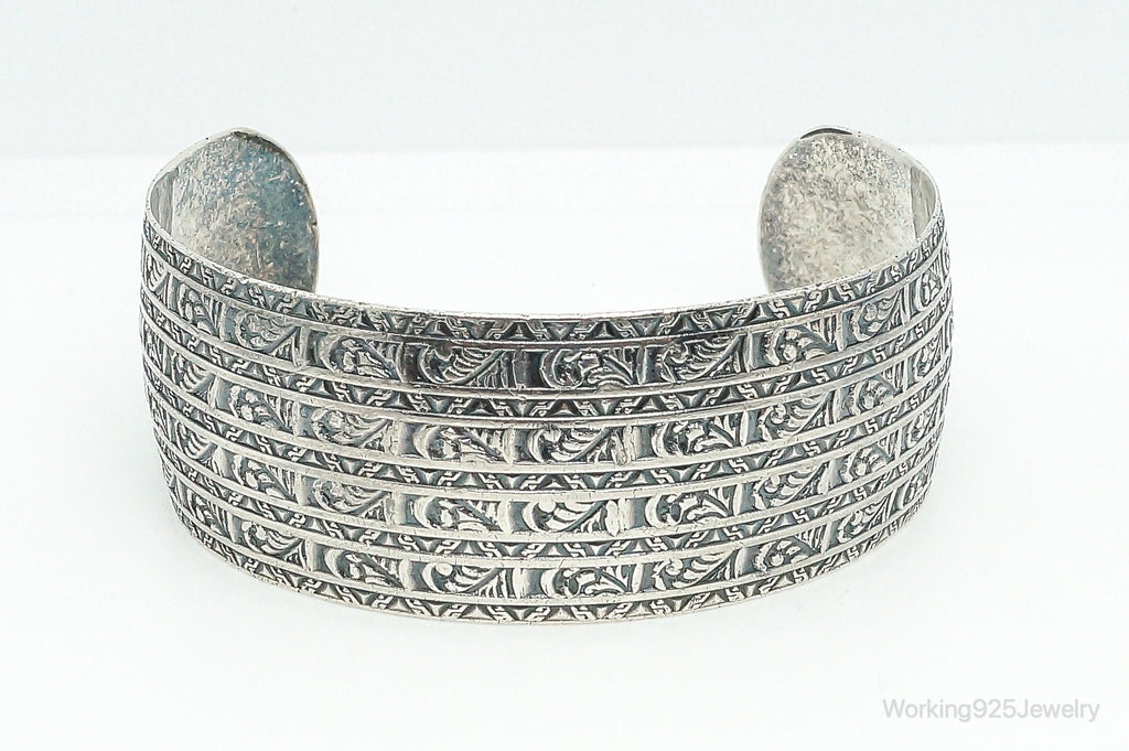 Antique Art Deco Etched Sterling Silver Cuff Bracelet