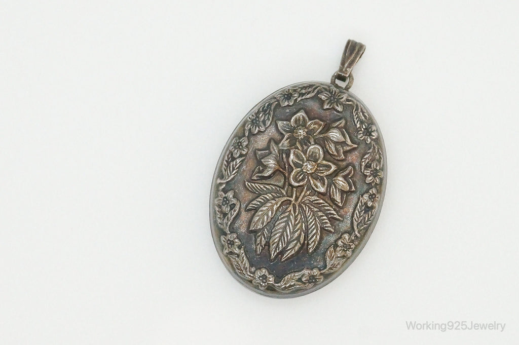 Antique Art Nouveau Flowers Sterling Silver Necklace Pendant