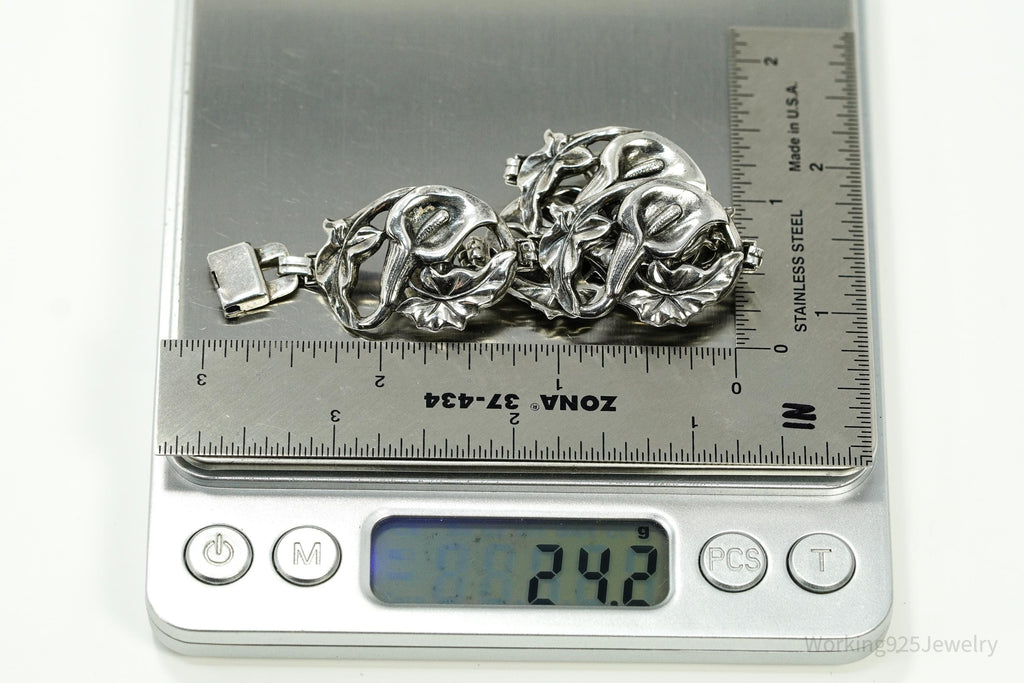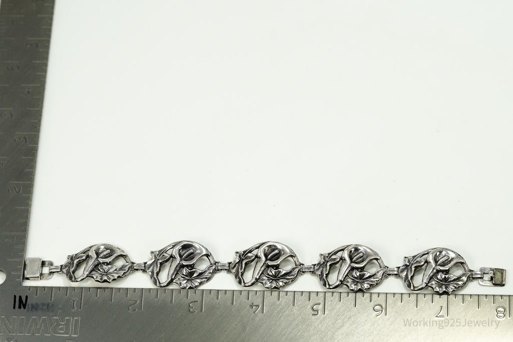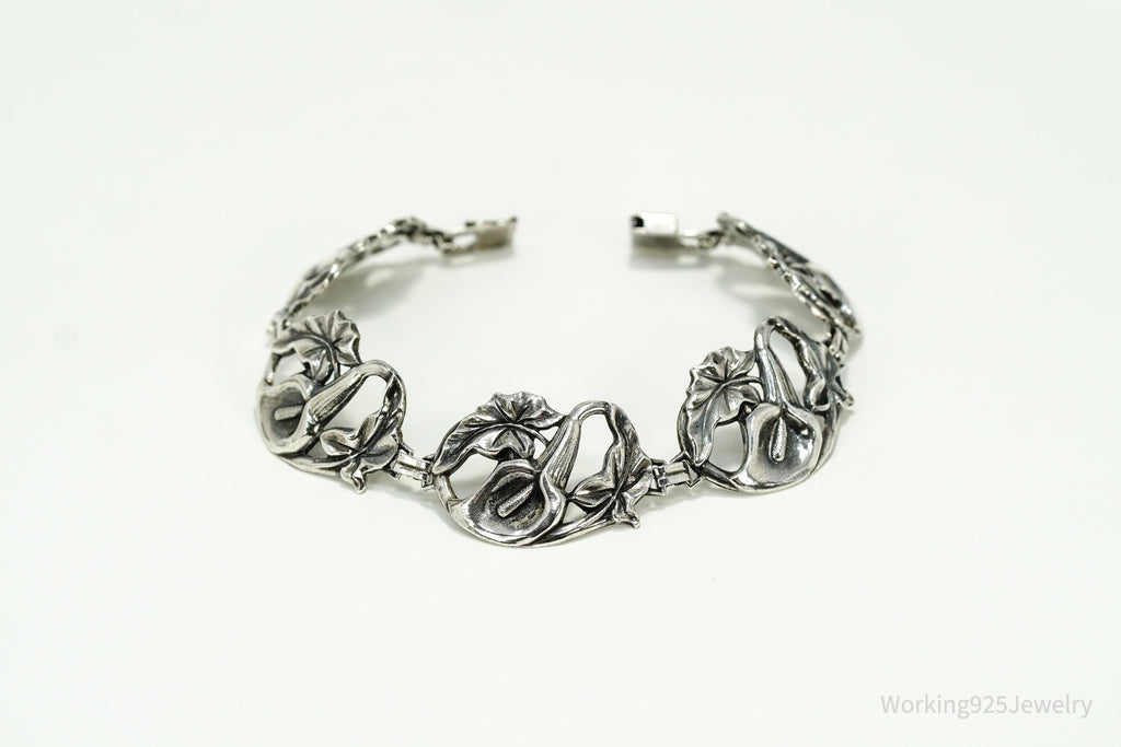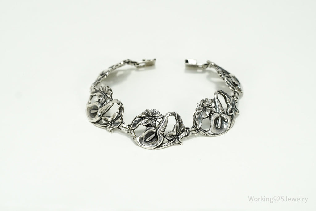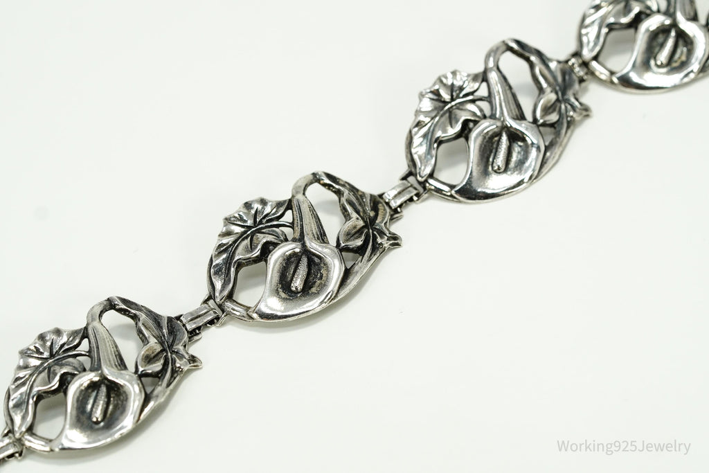 Antique Calla Lilly Floral Sterling Silver Bracelet 7 7/8"