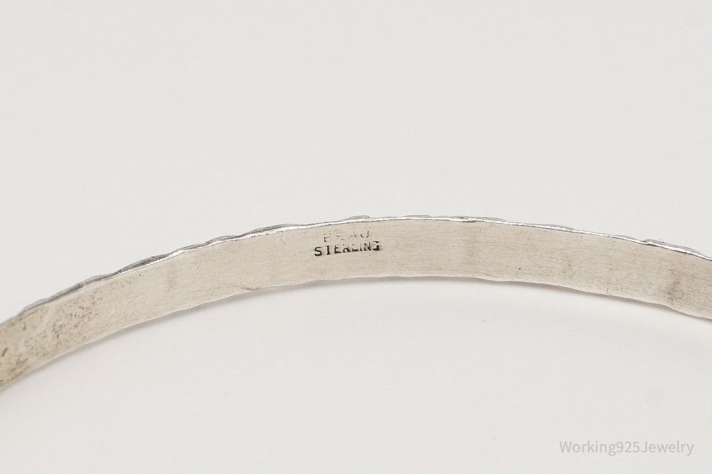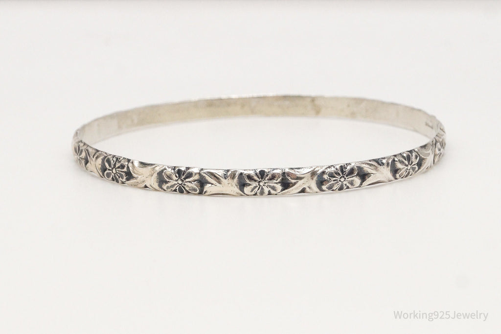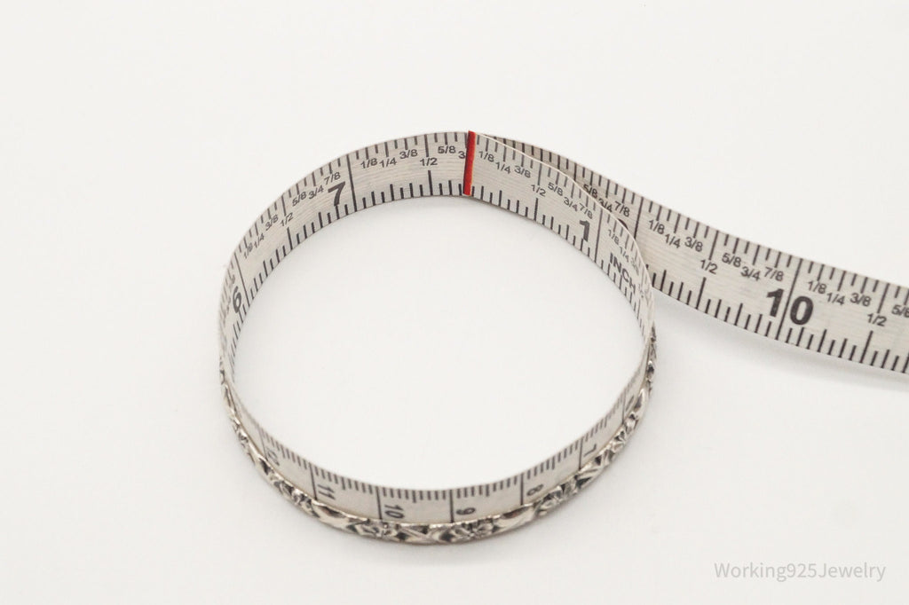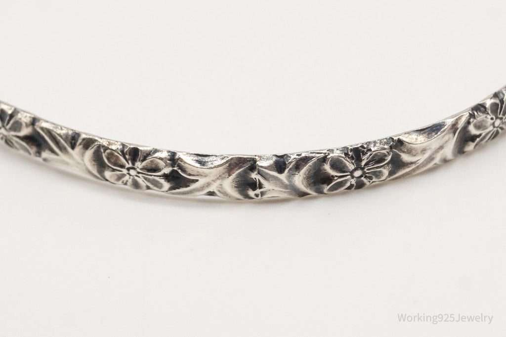 Antique Designer Beau Floral Pattern Sterling Silver Bangle Bracelet