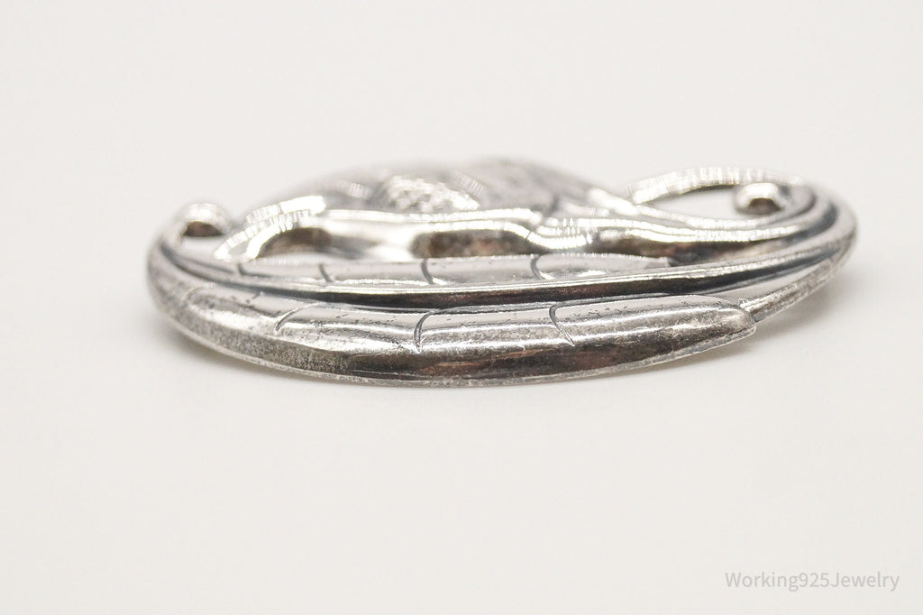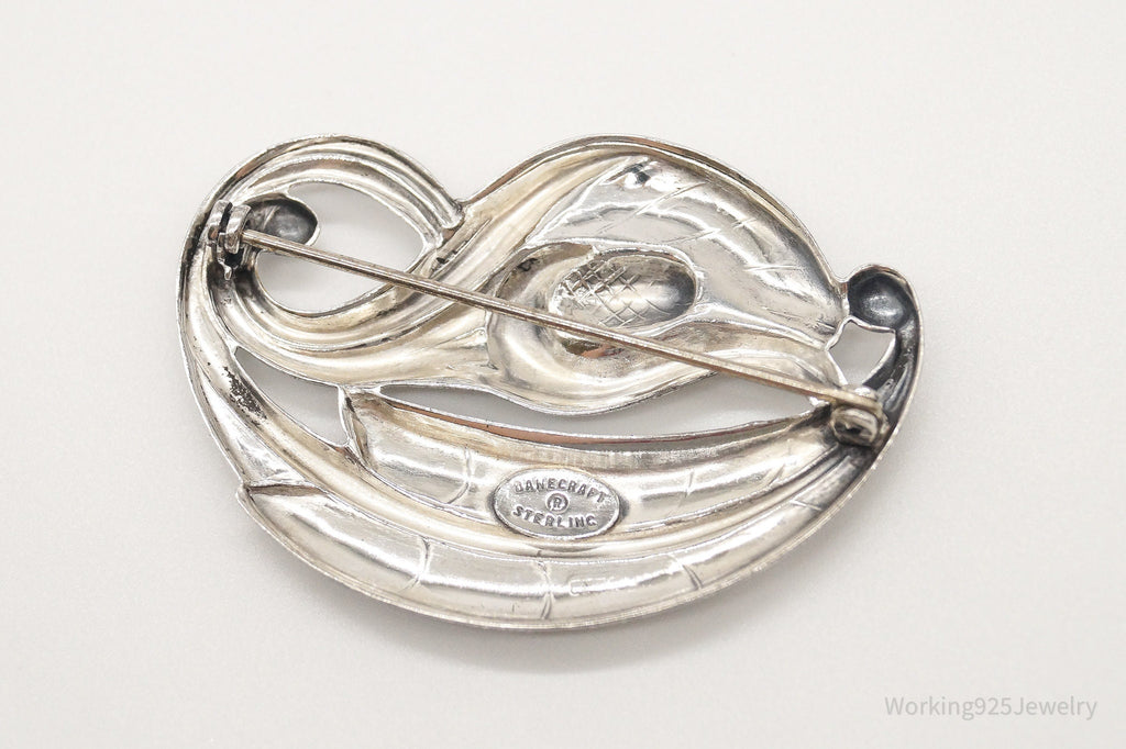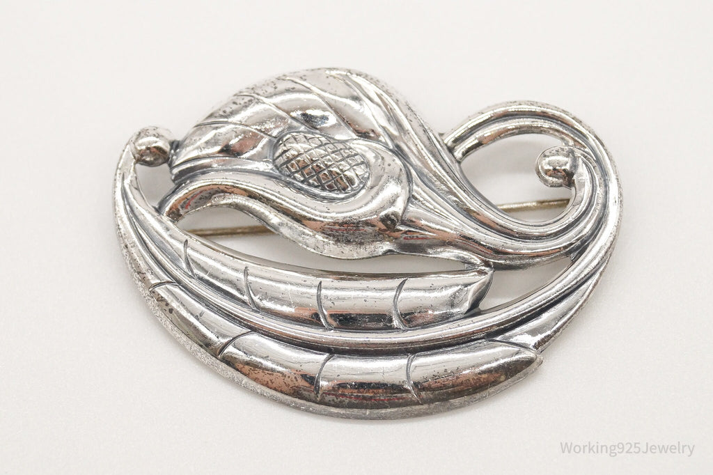 Antique Designer Danecraft Large Sterling Silver Flower Motif Pin Brooch