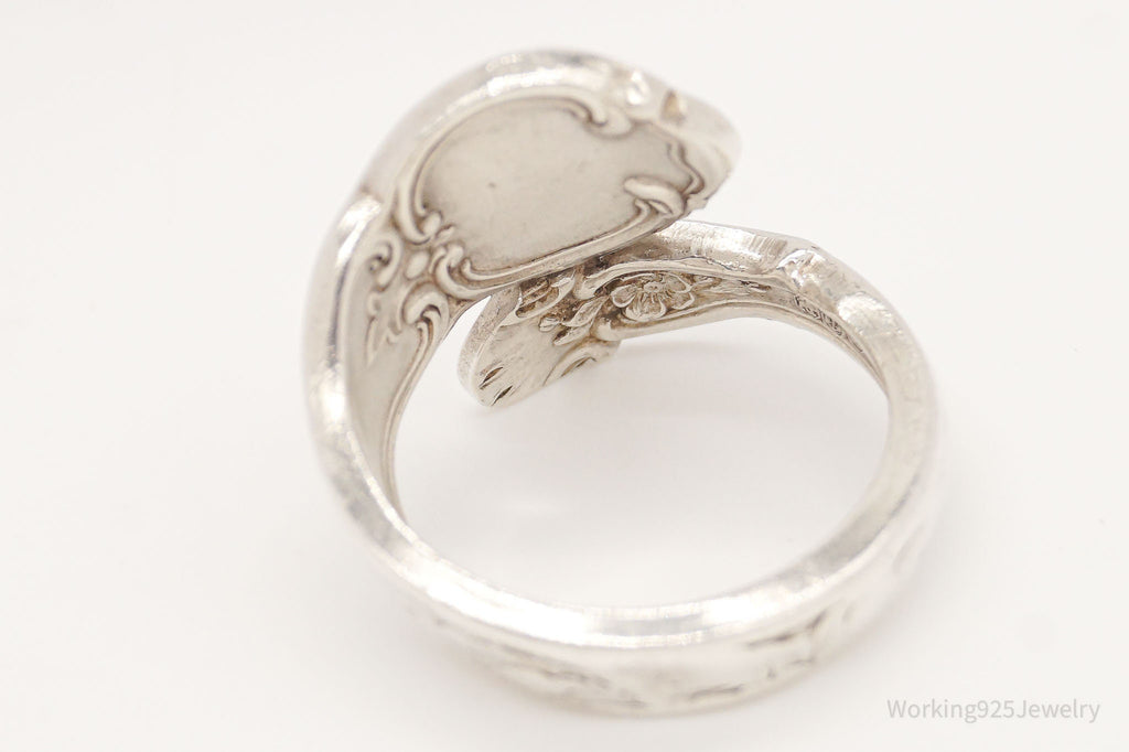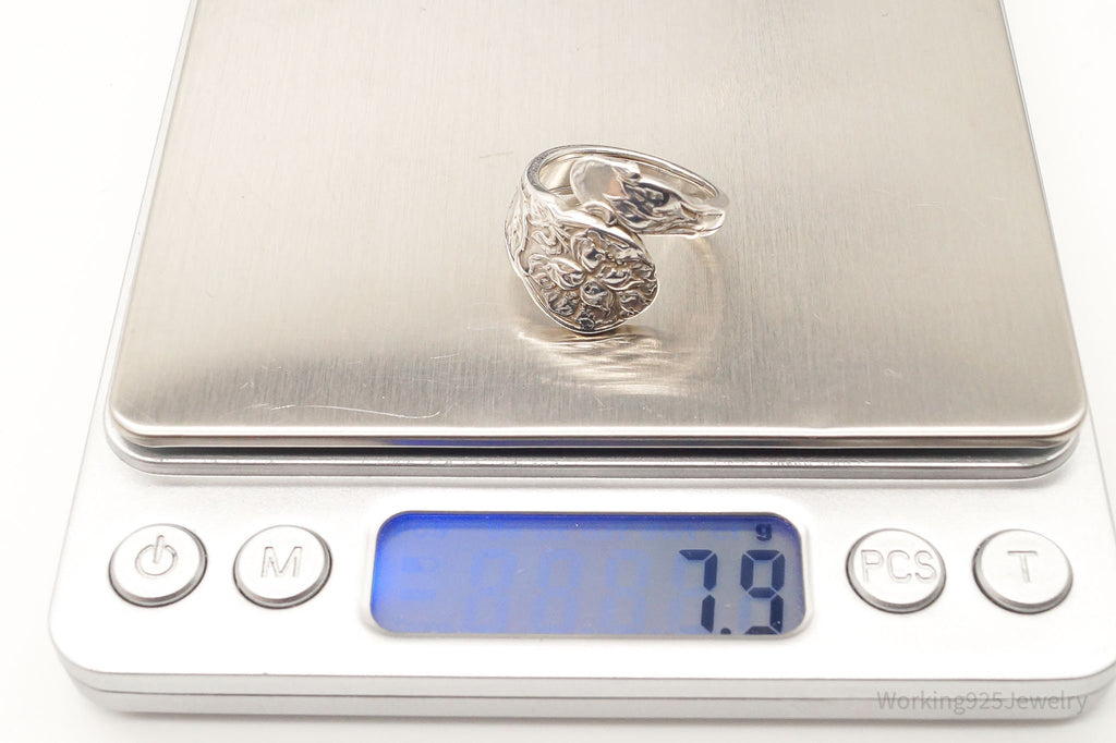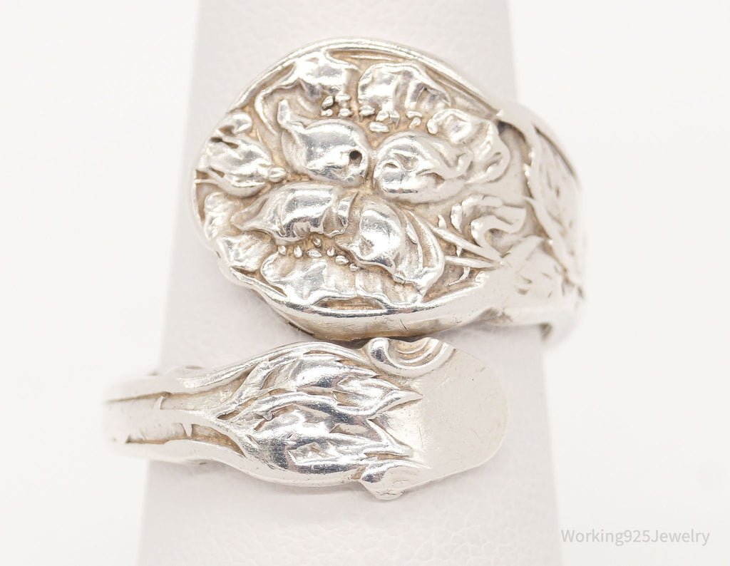 Antique Designer GORHAM Flower Sterling Silver Wrap Spoon Ring - Sz 7 Adjustable