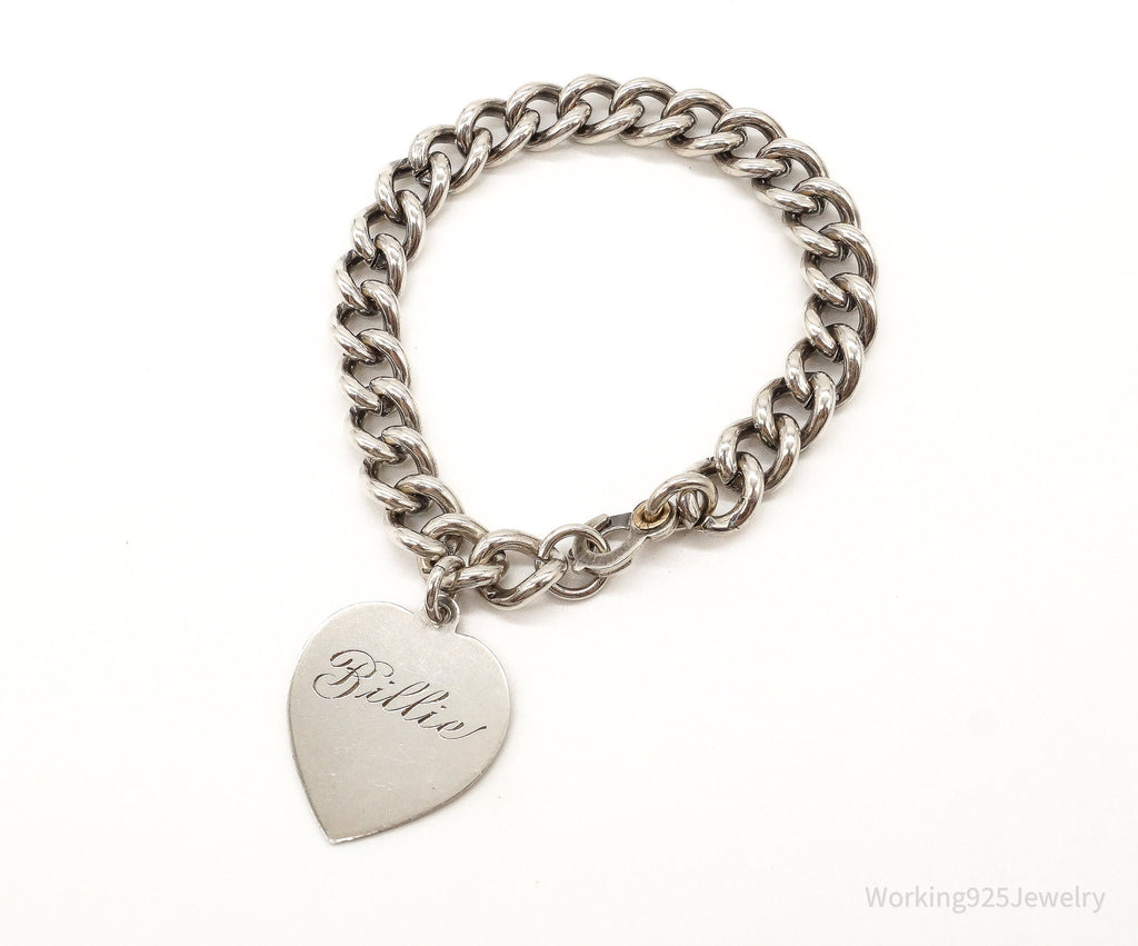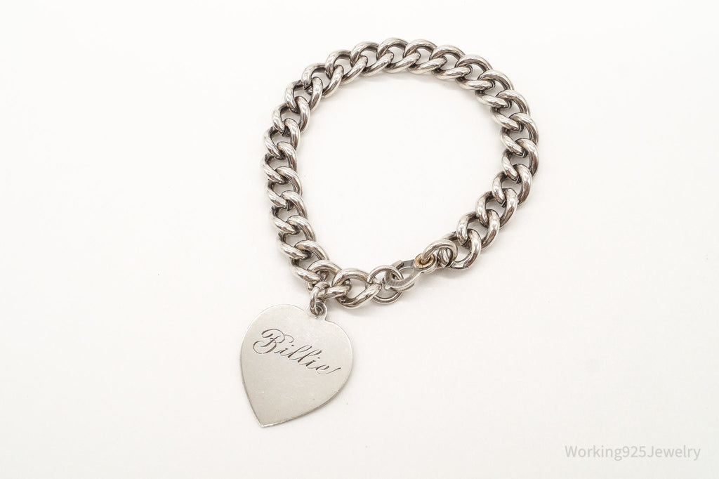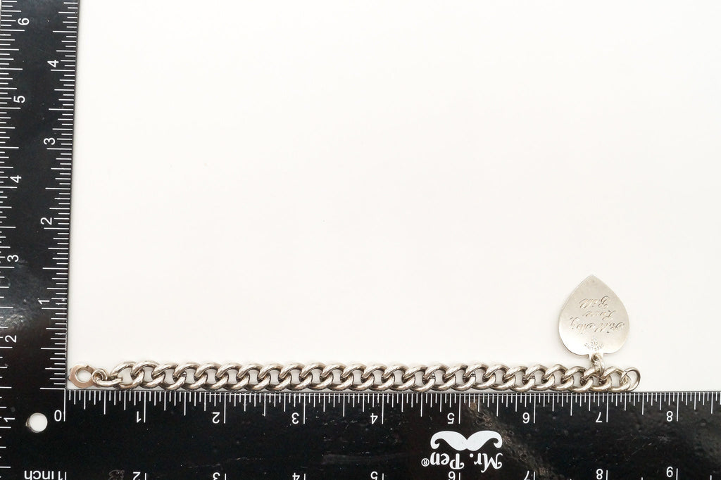 Antique Designer Heart Charm Lover Sterling Silver Chainlink Bracelet