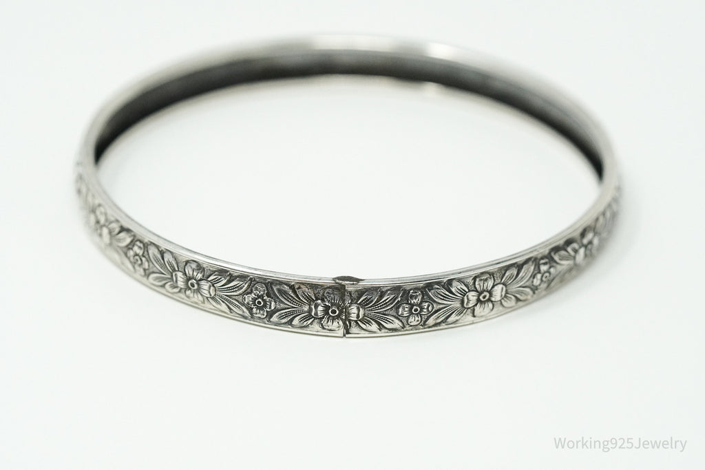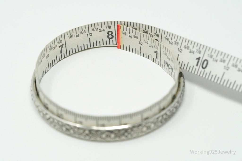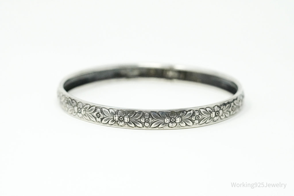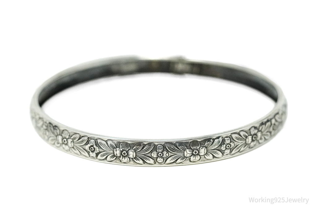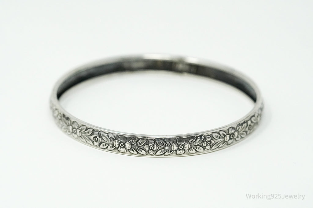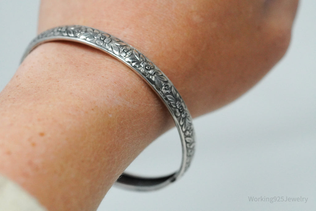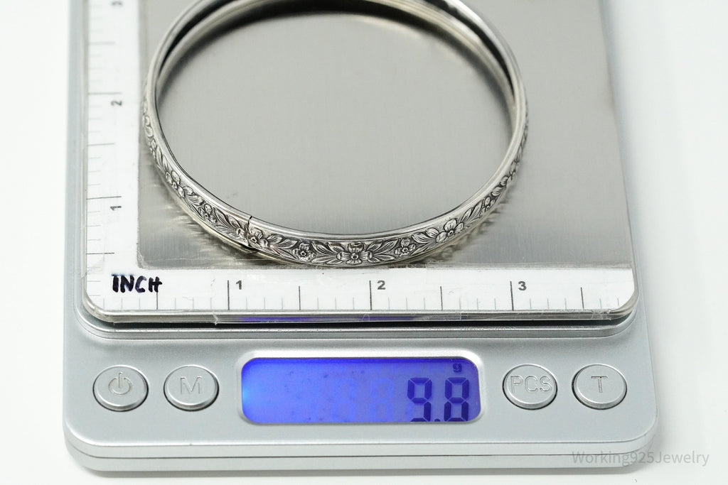 Antique Designer Lang Sterling Silver Floral Bangle Bracelet 8"