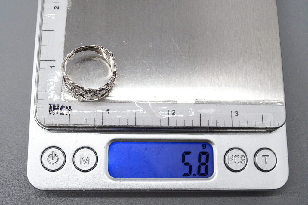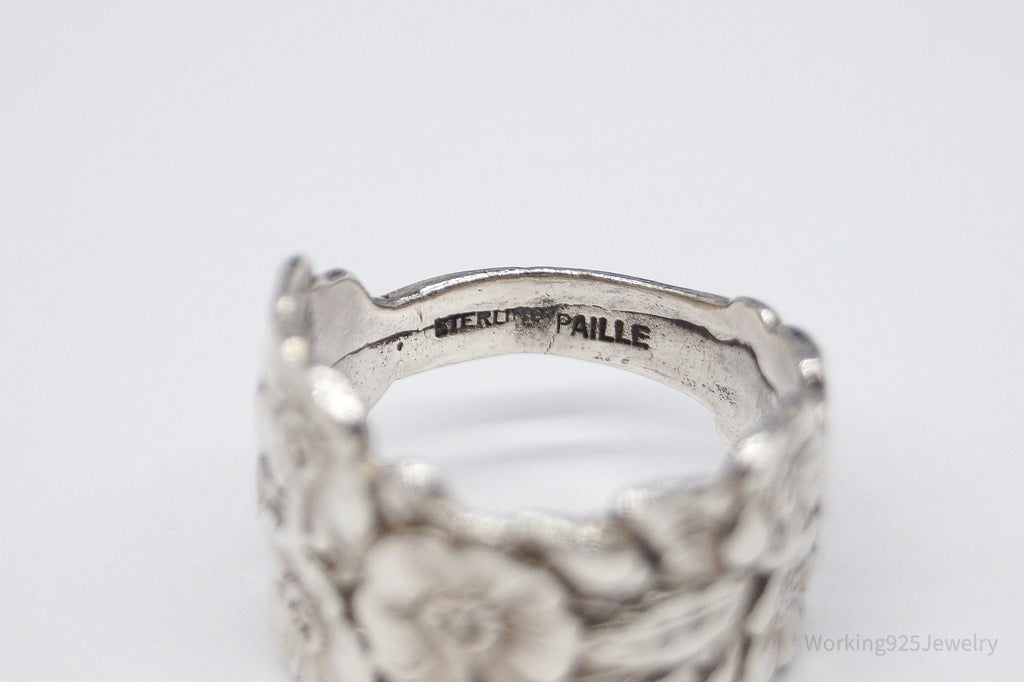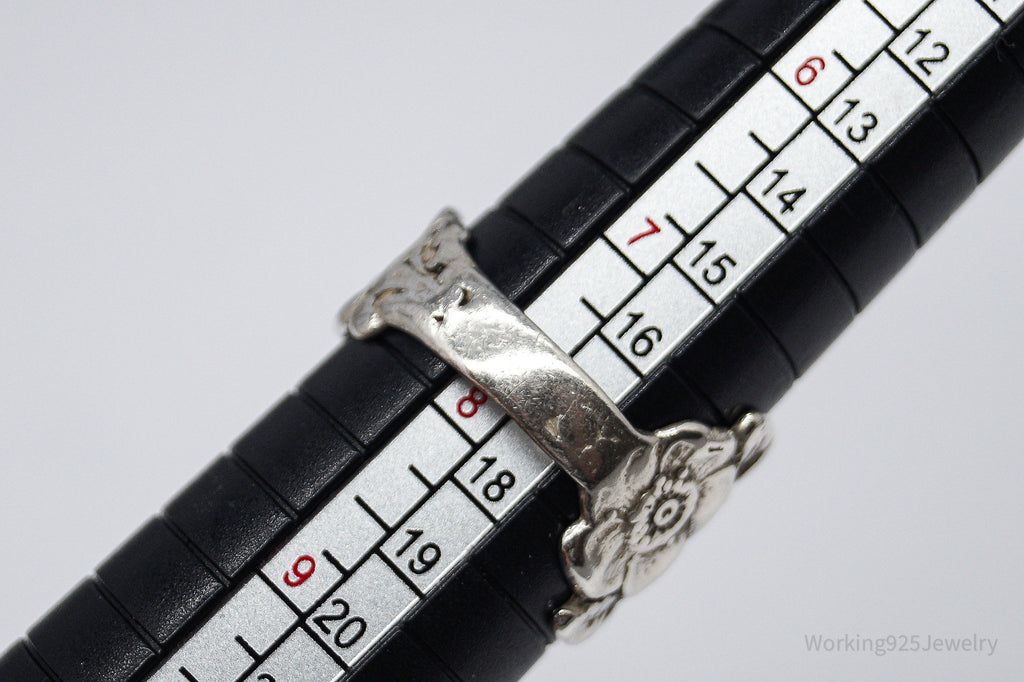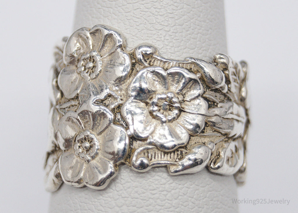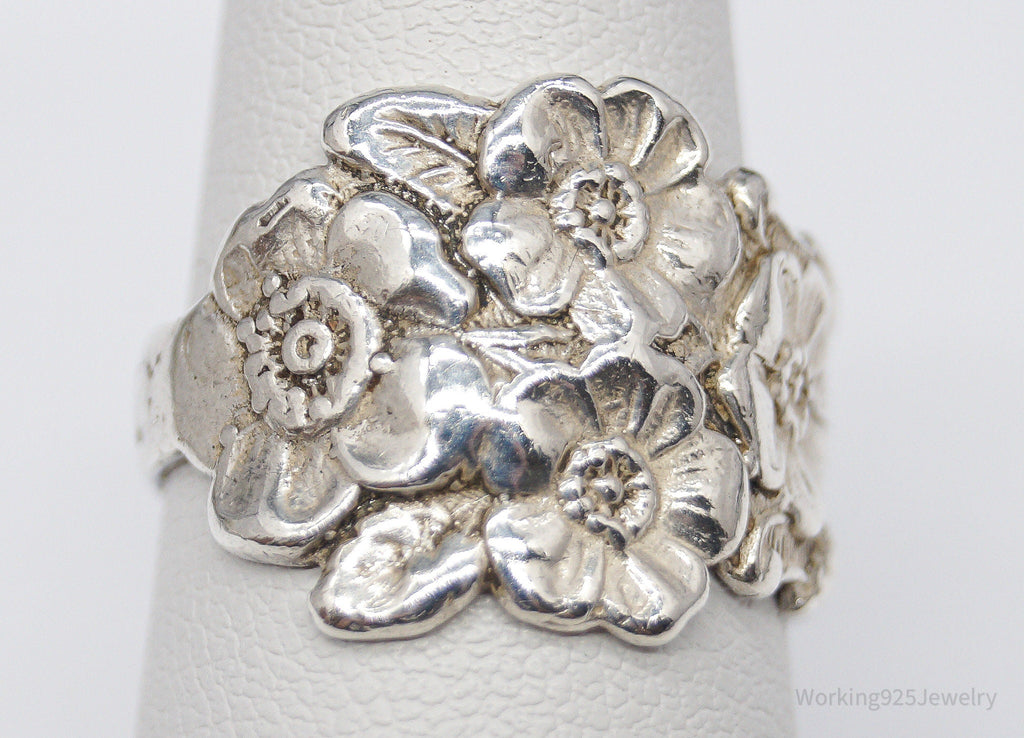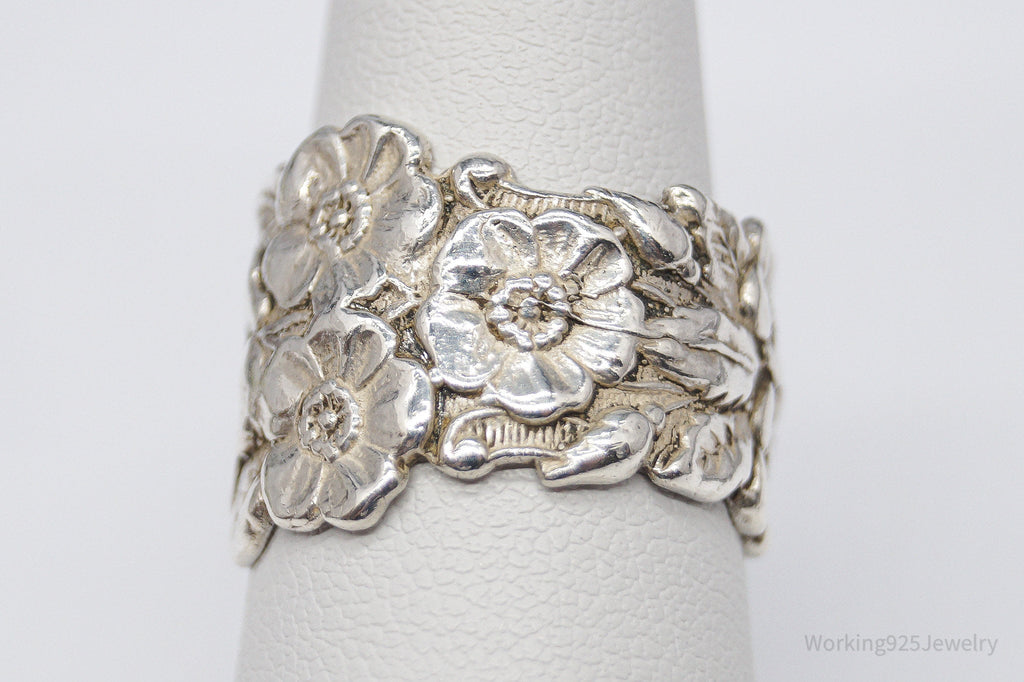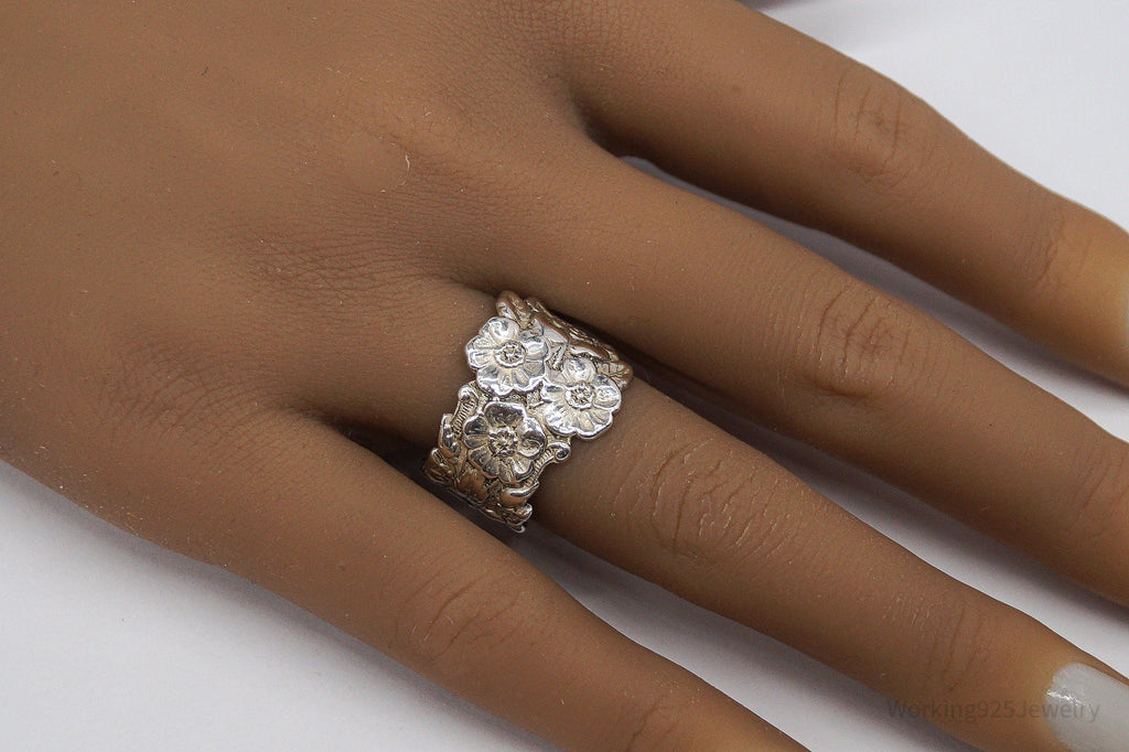 Antique Designer Paille Floral Pattern Sterling Silver Ring - Size 7.75