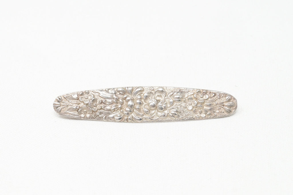 Antique Designer Stieff Art Nouveau Motif Floral Sterling Silver Brooch Pin