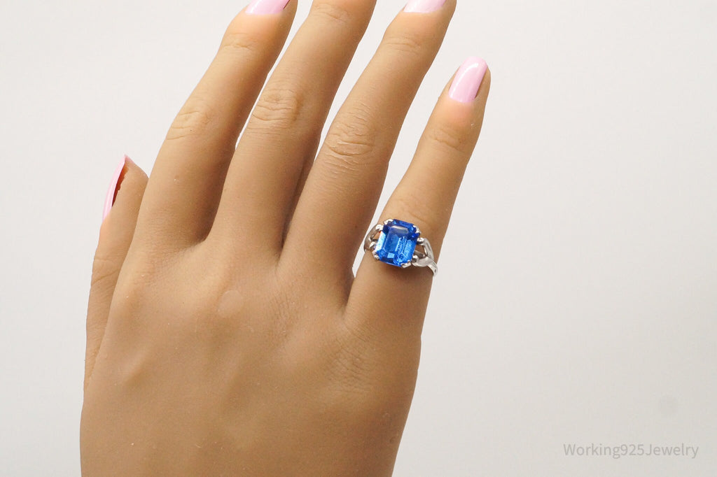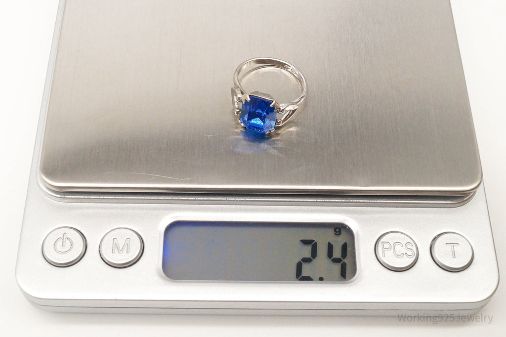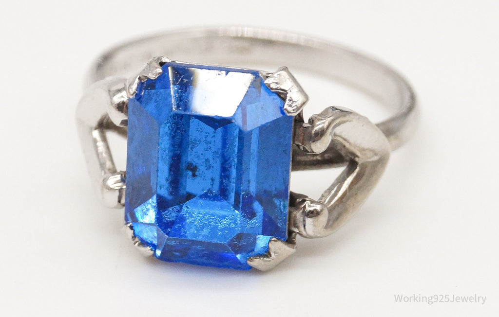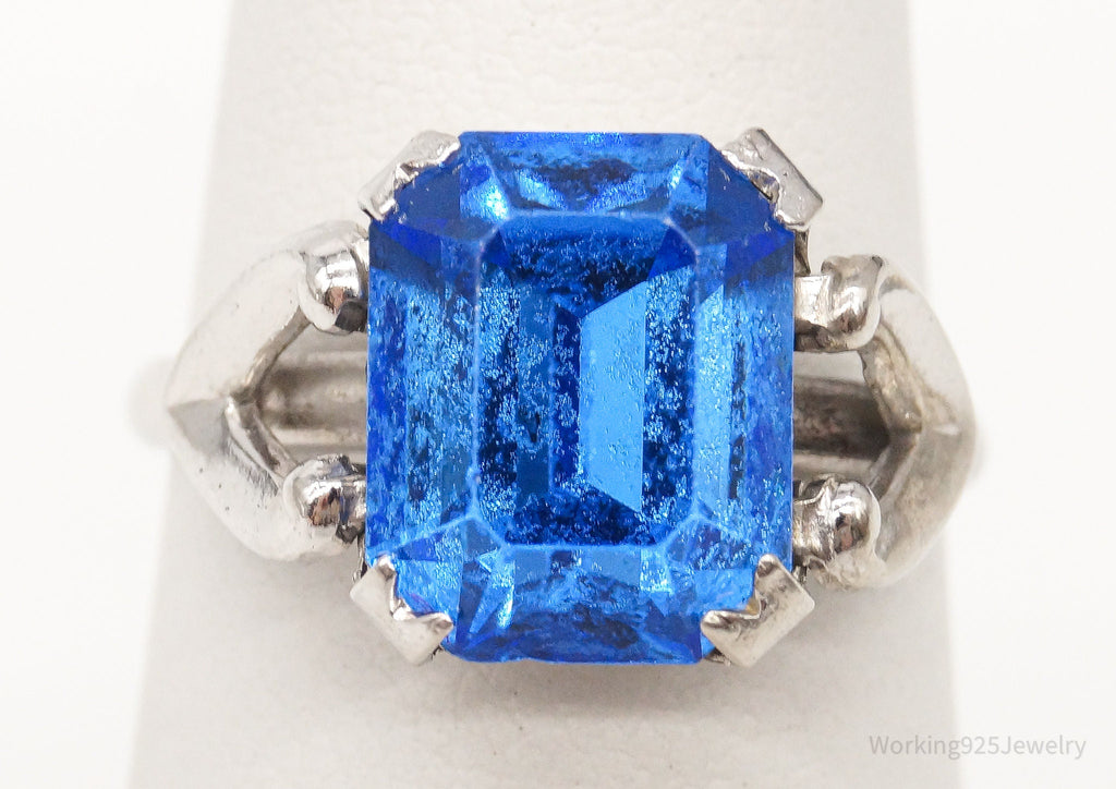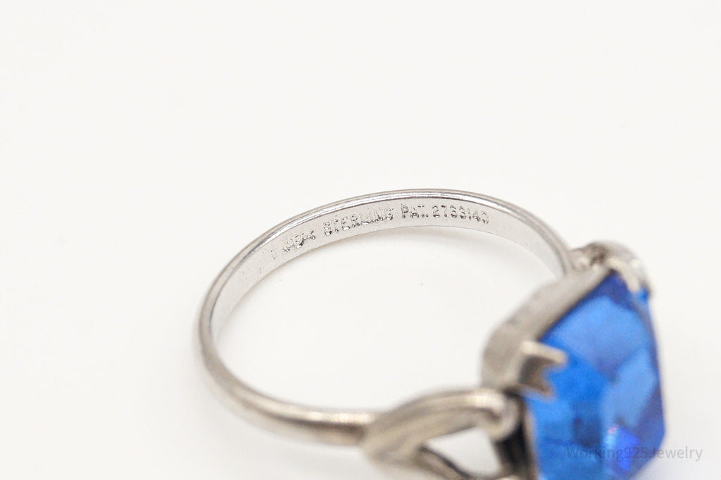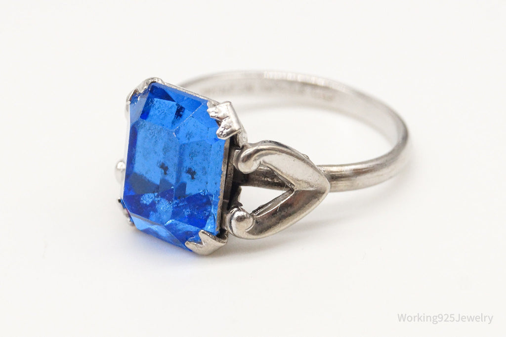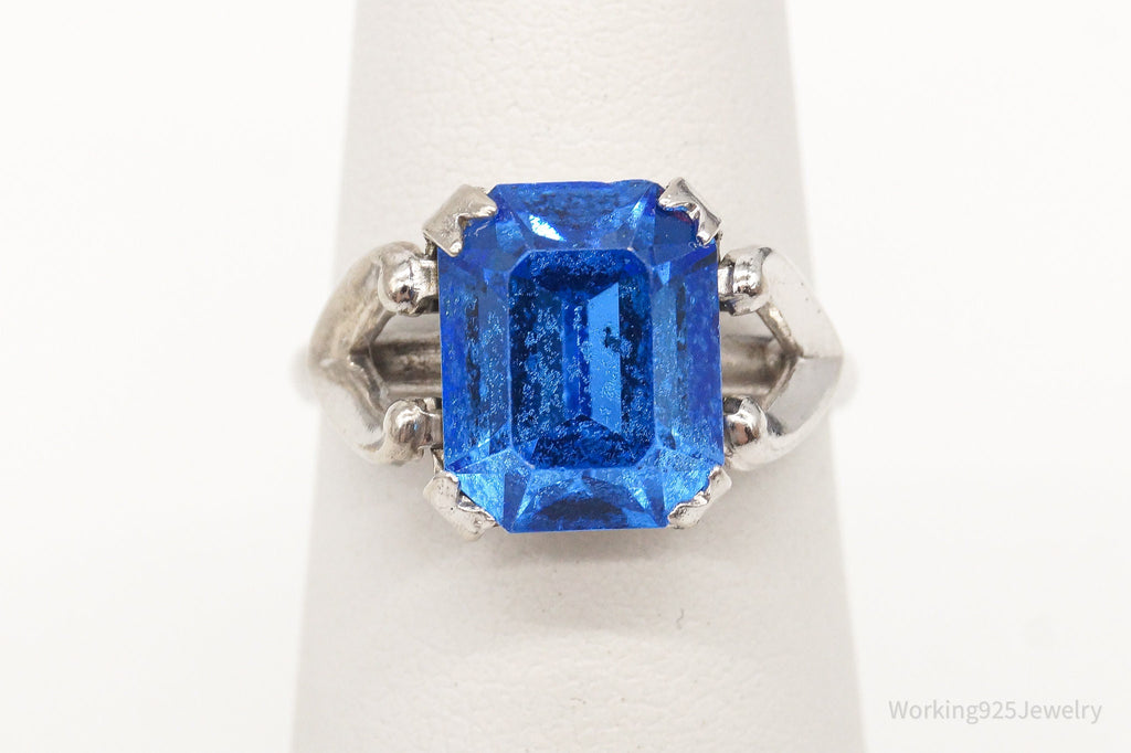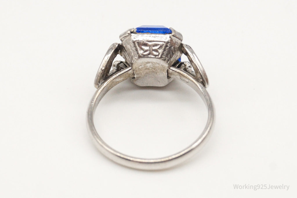Antique Designer Uncas Blue Glass Sterling Silver Ring - Size 4.5