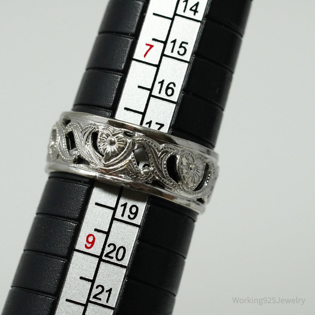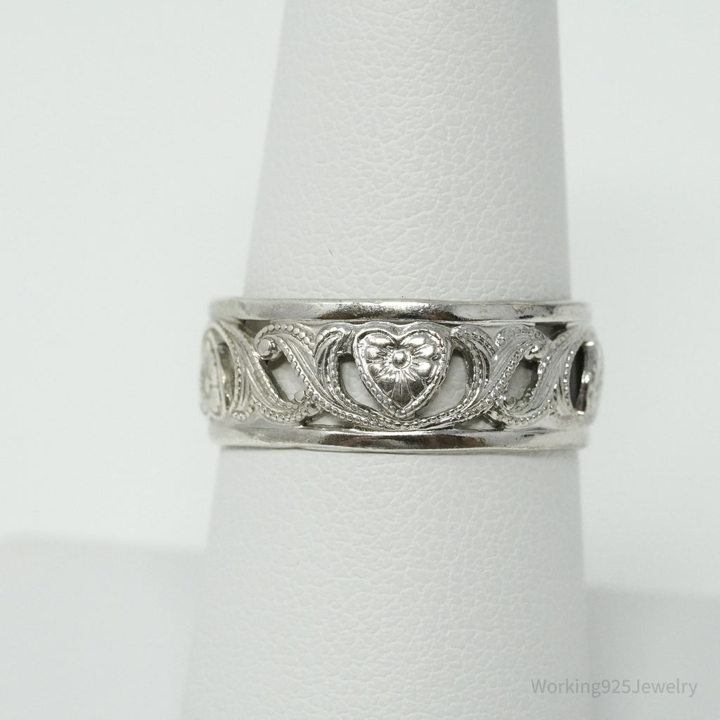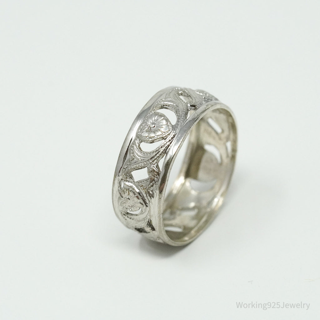 Antique Designer Uncas MFG Co Ornate Sterling Silver Band Ring - Size 8.25
