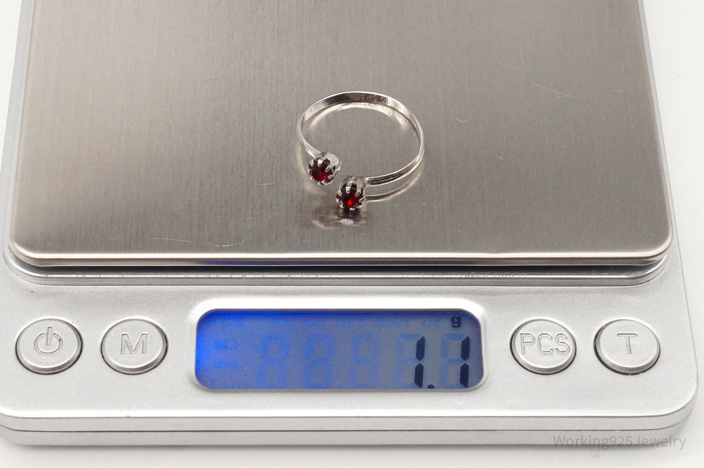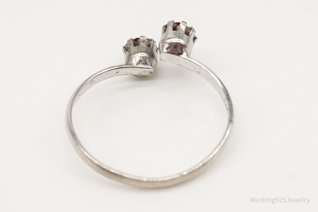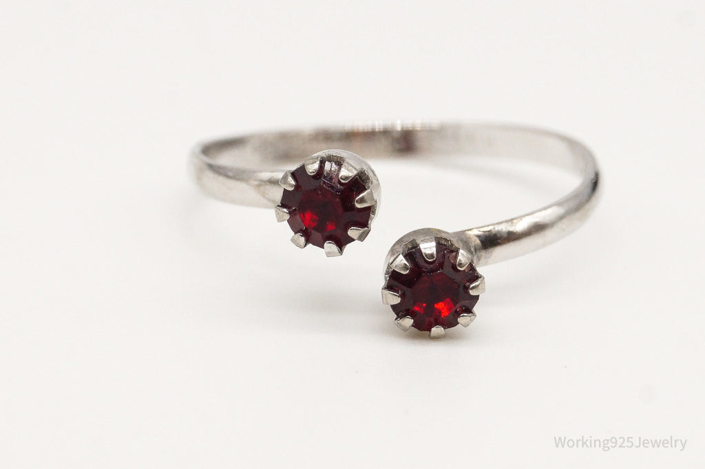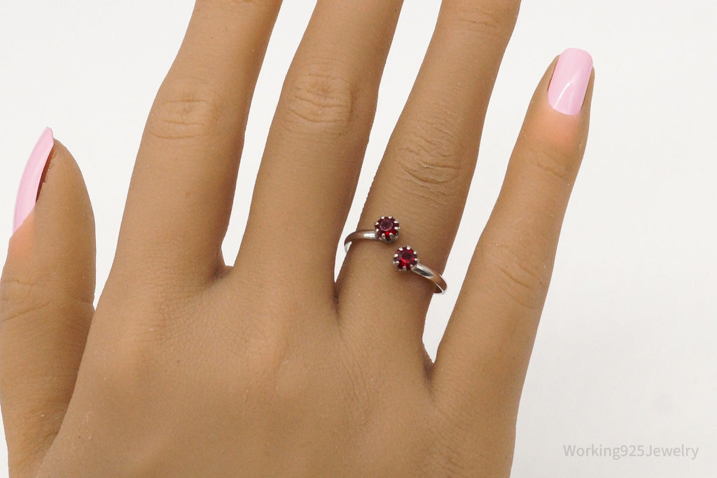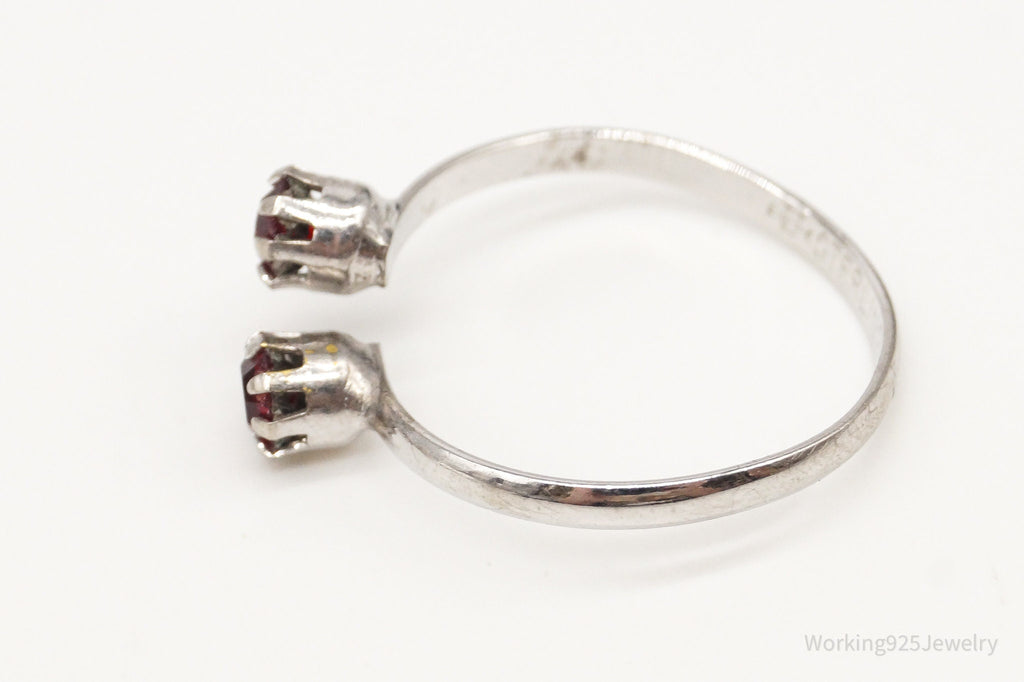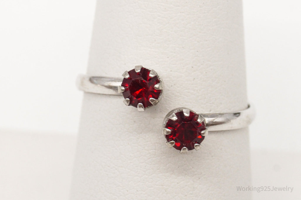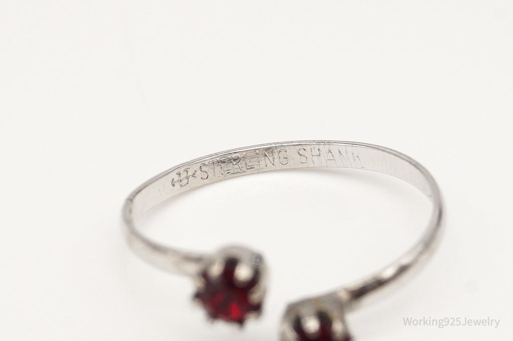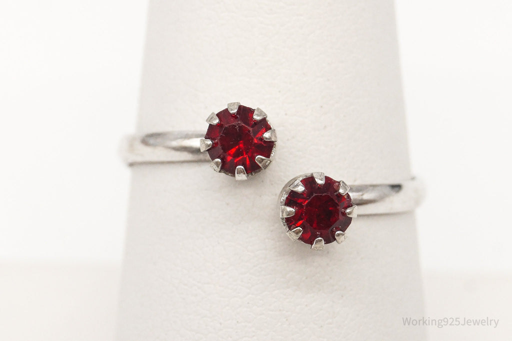 Antique Designer Uncas Red Rhinestone Sterling Silver Ring - Size 8 Adjustable