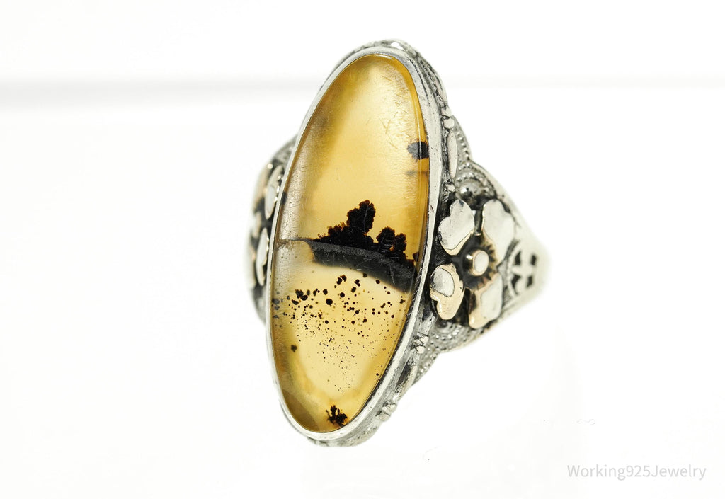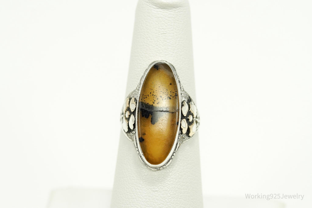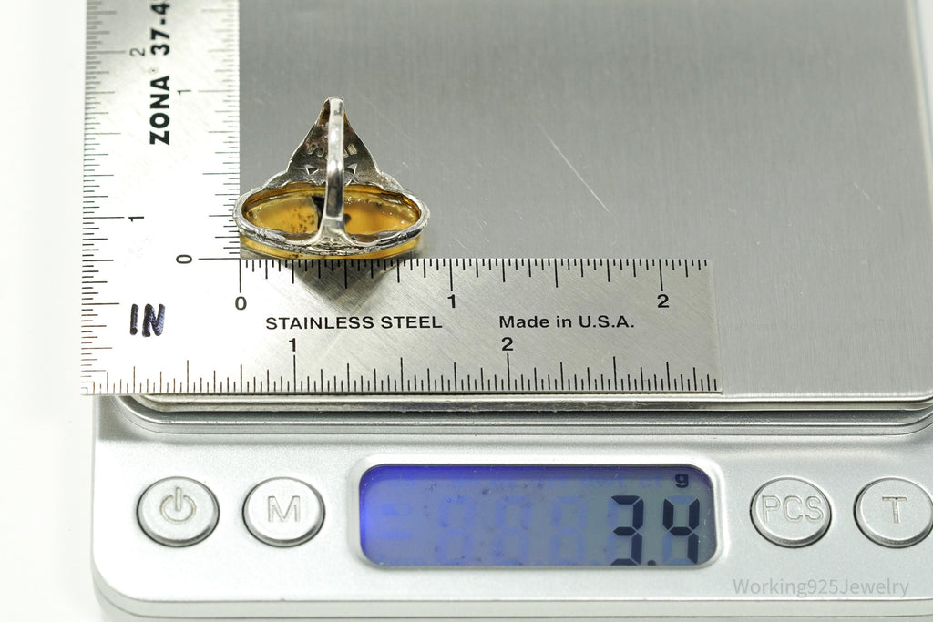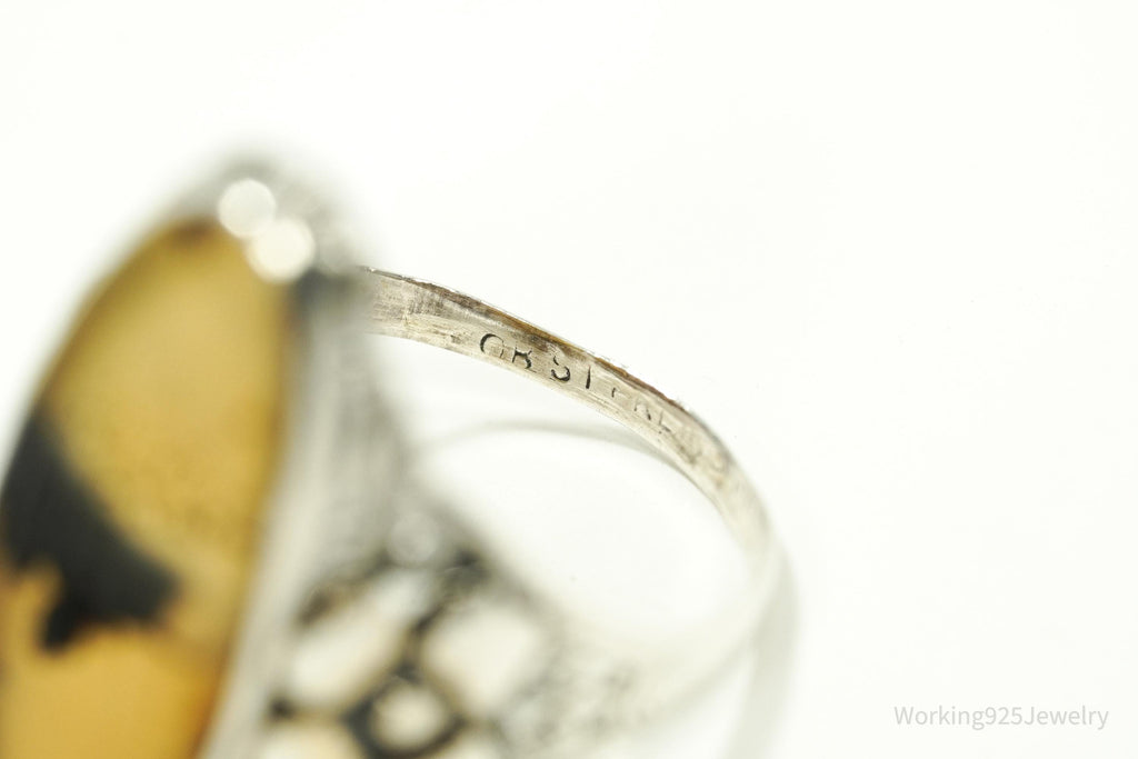 Antique Edwardian Ostby & Barton Agate Sterling Silver Ornate Ring Size 6.25