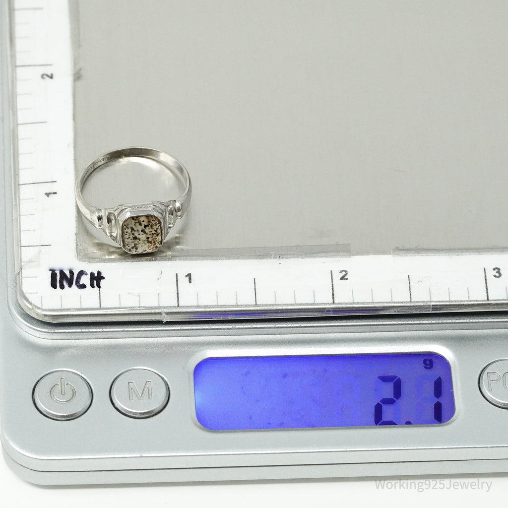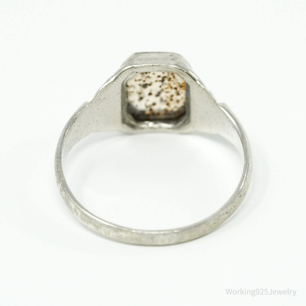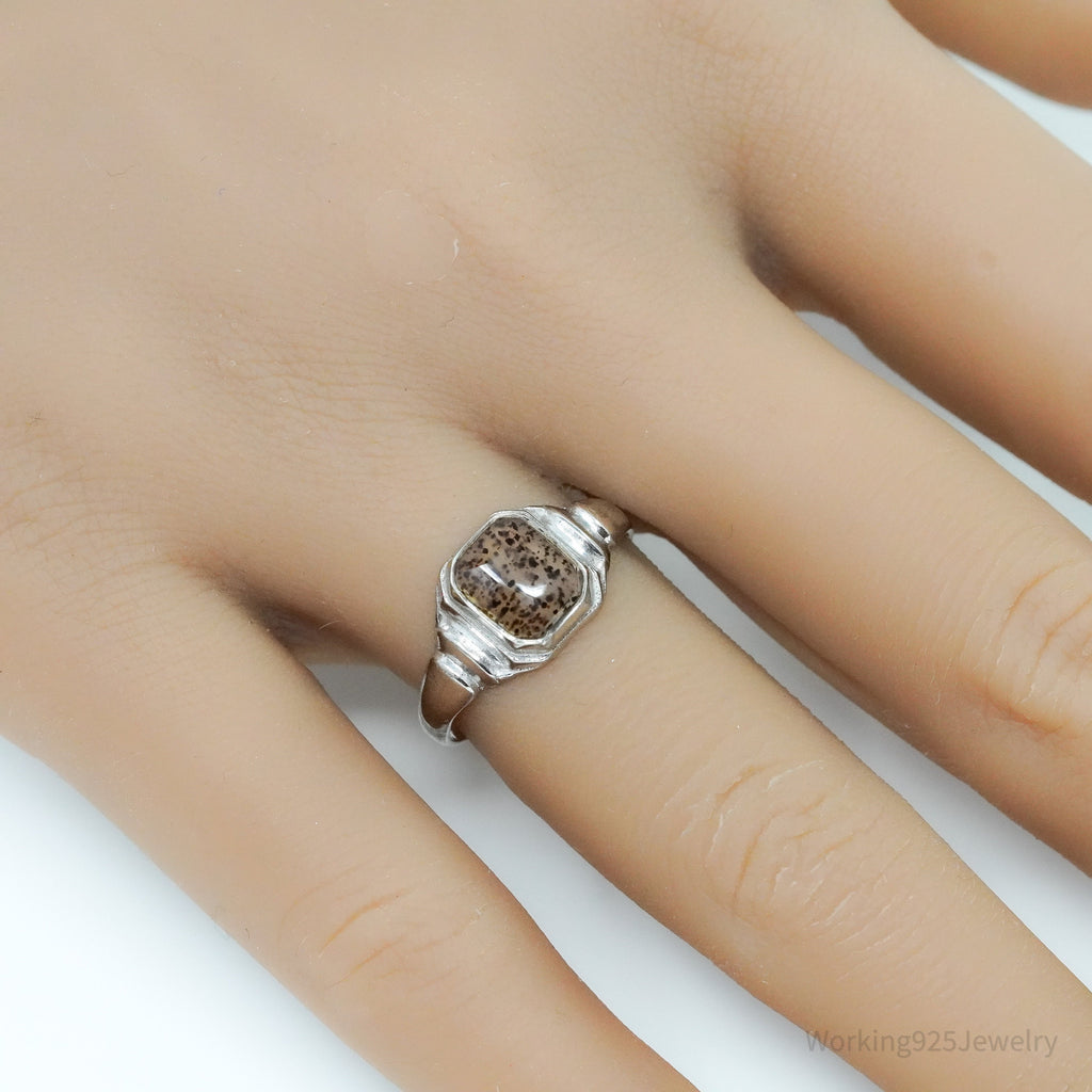 Antique Edwardian Ostby & Barton Moss Agate Sterling Silver Ring Size 7.5