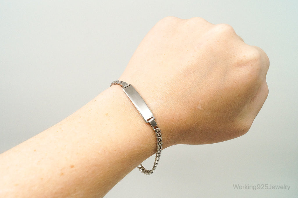 Antique Engravable Name ID Bar Monogram Sterling Silver Bracelet