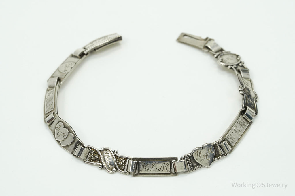 Antique Family & Children Members Names Sterling Silver Mother's Bracelet