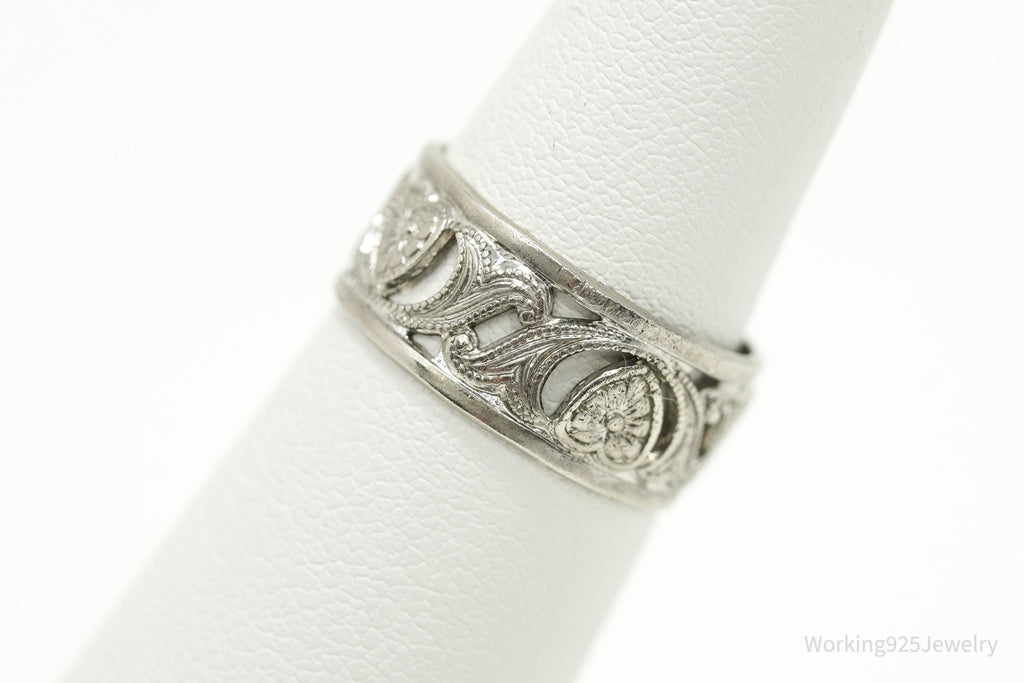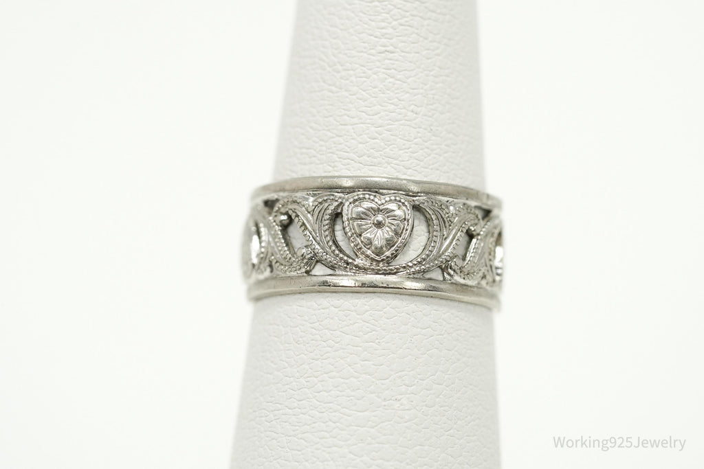 Antique Floral Hearts Patter Sterling Silver Band Ring - Size 5.25