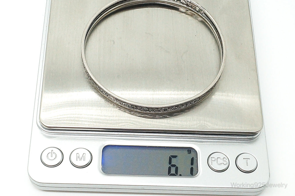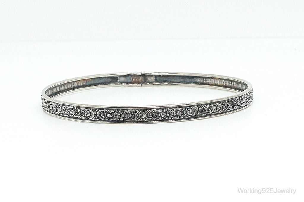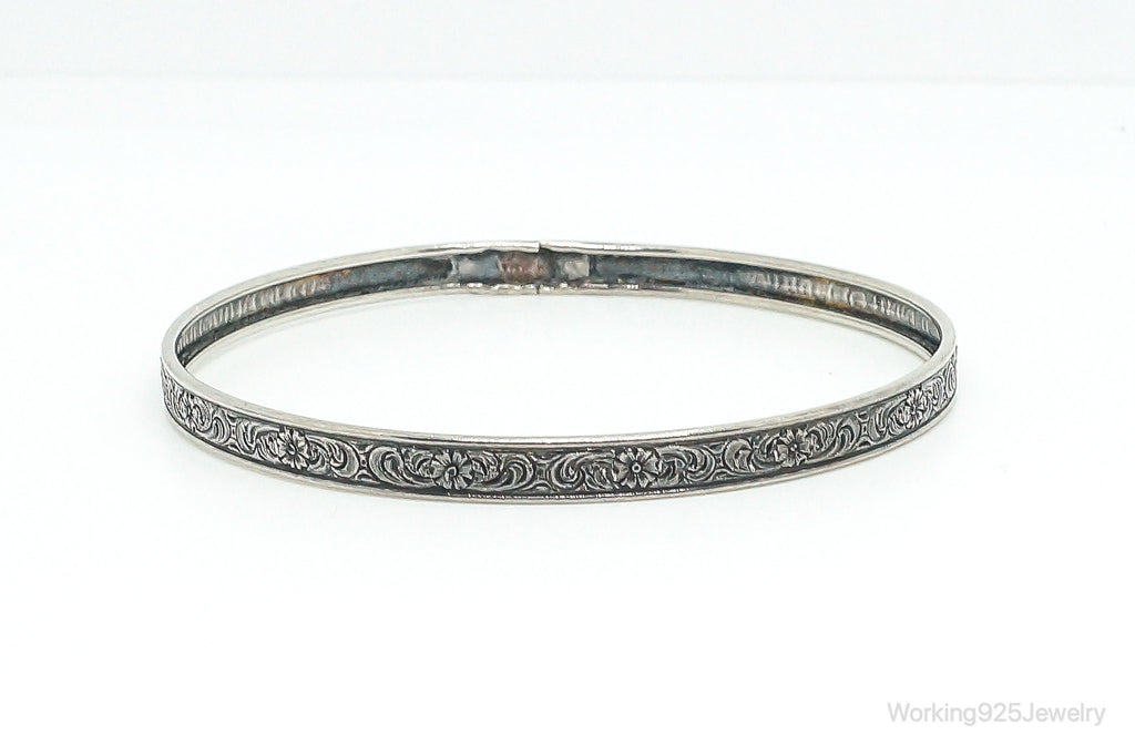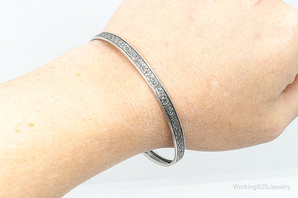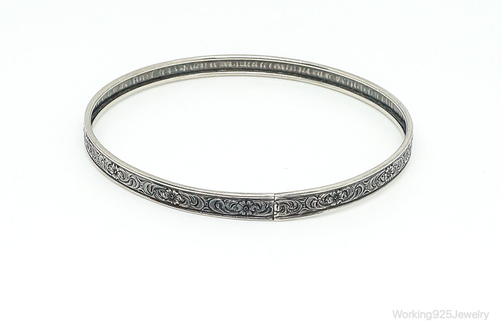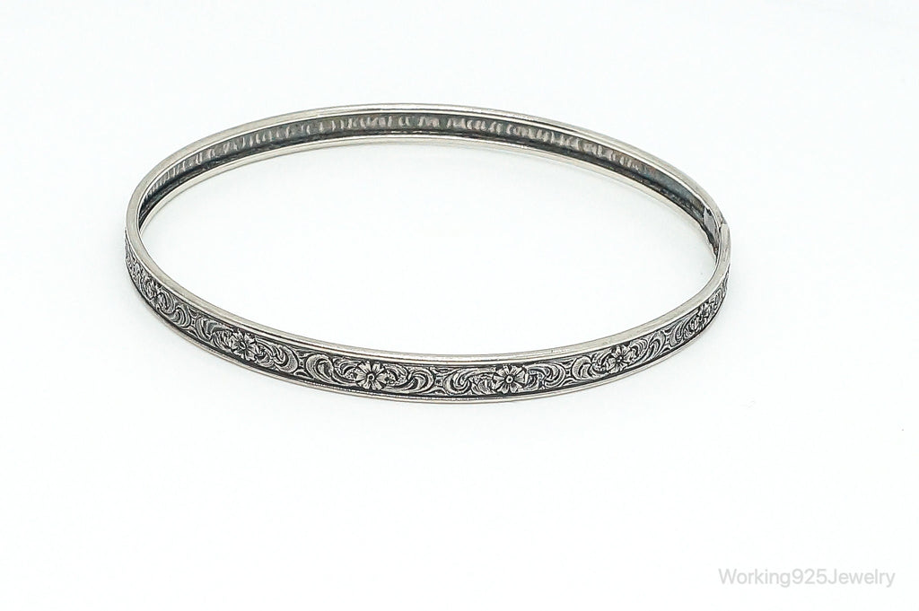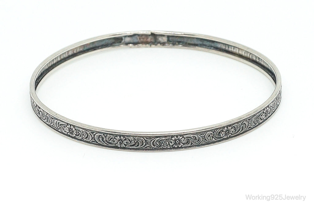 Antique Floral Pattern Sterling Silver Bangle Bracelet