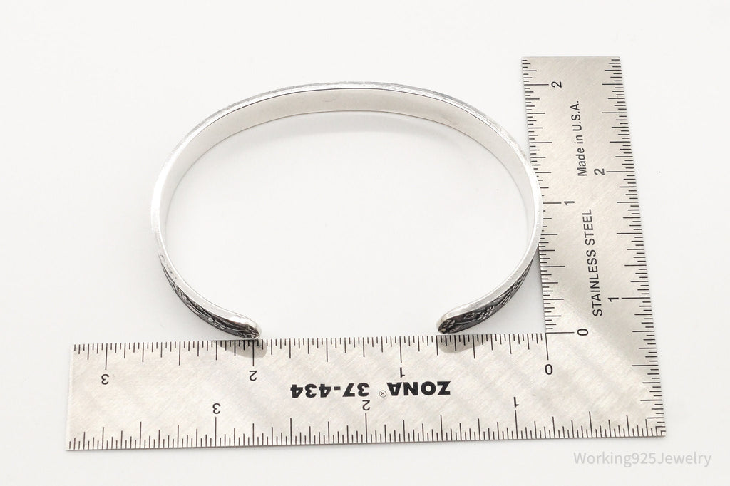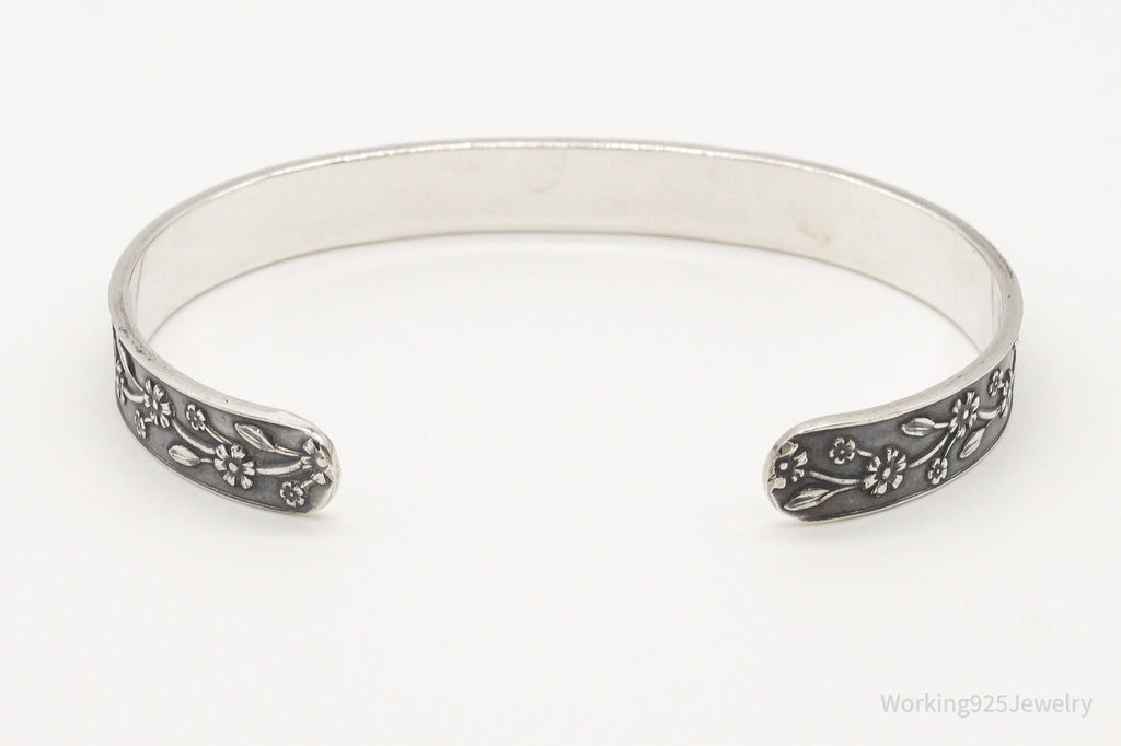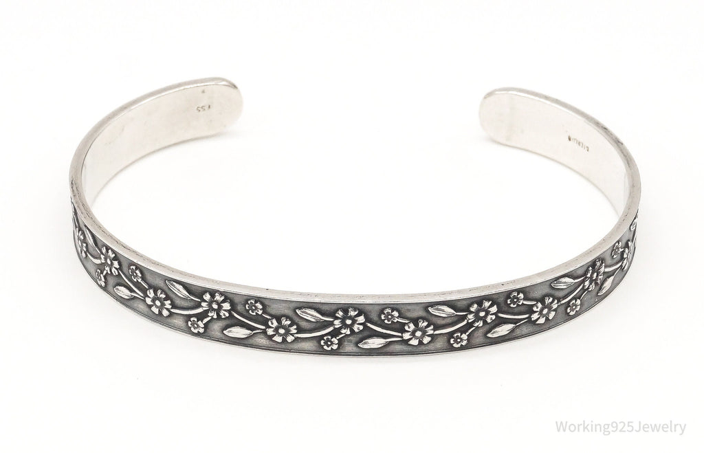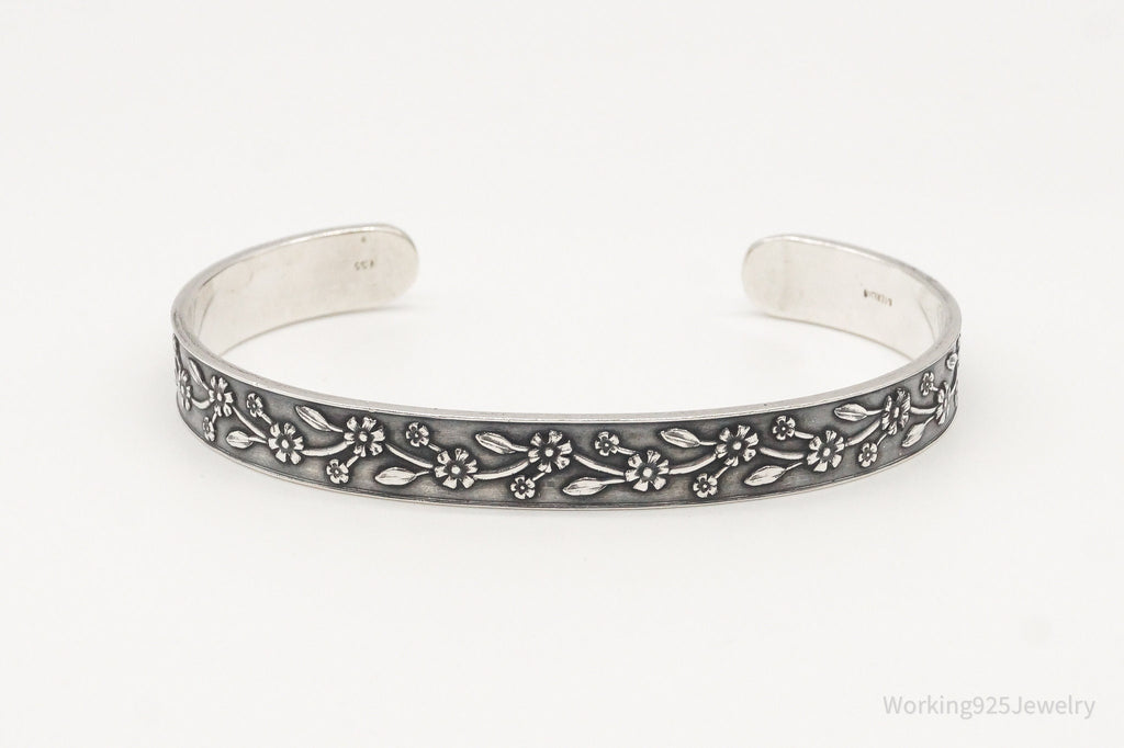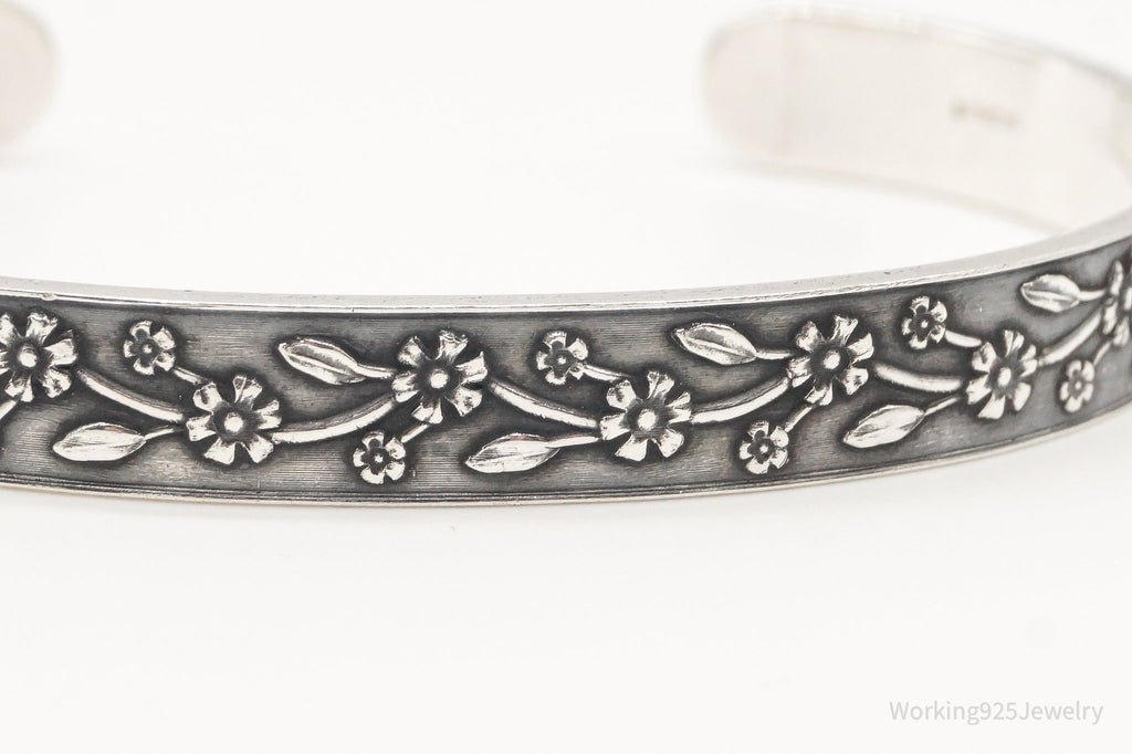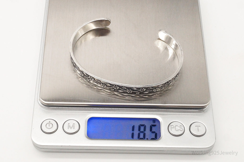 Antique Flowers On Vines Sterling Silver Cuff Bracelet