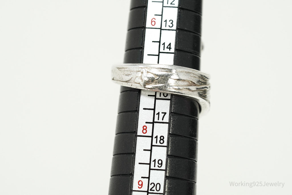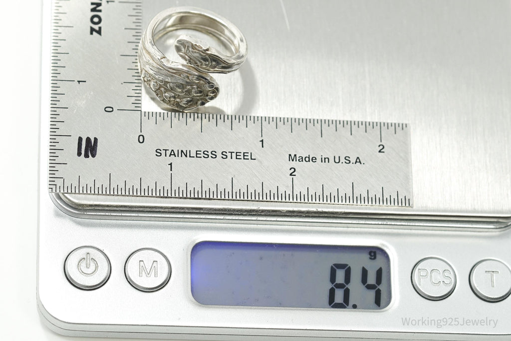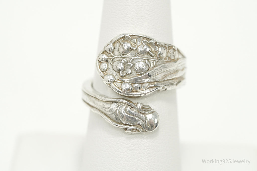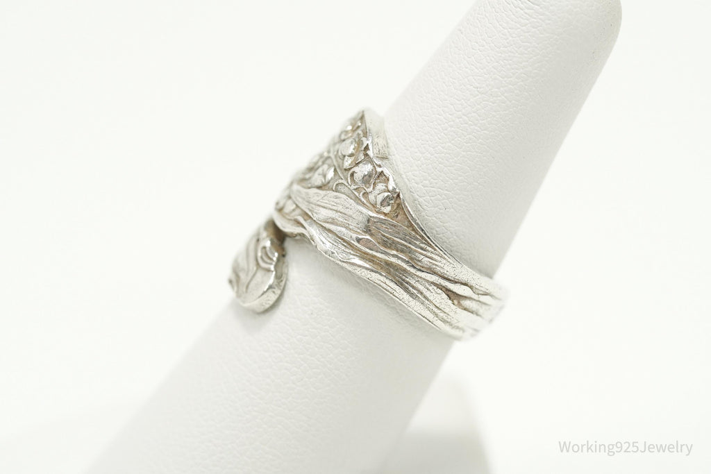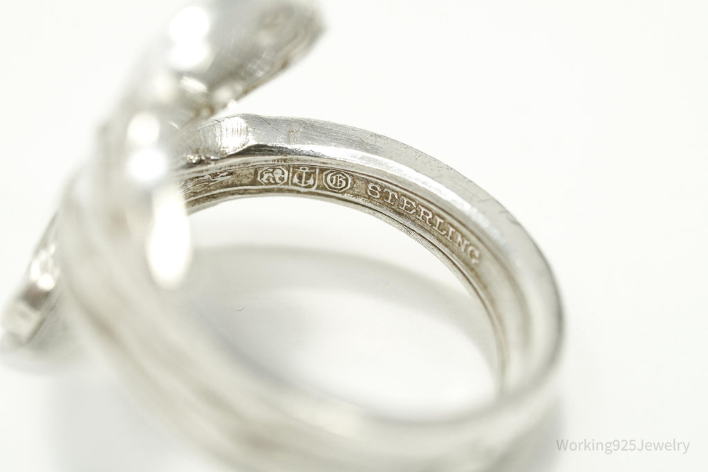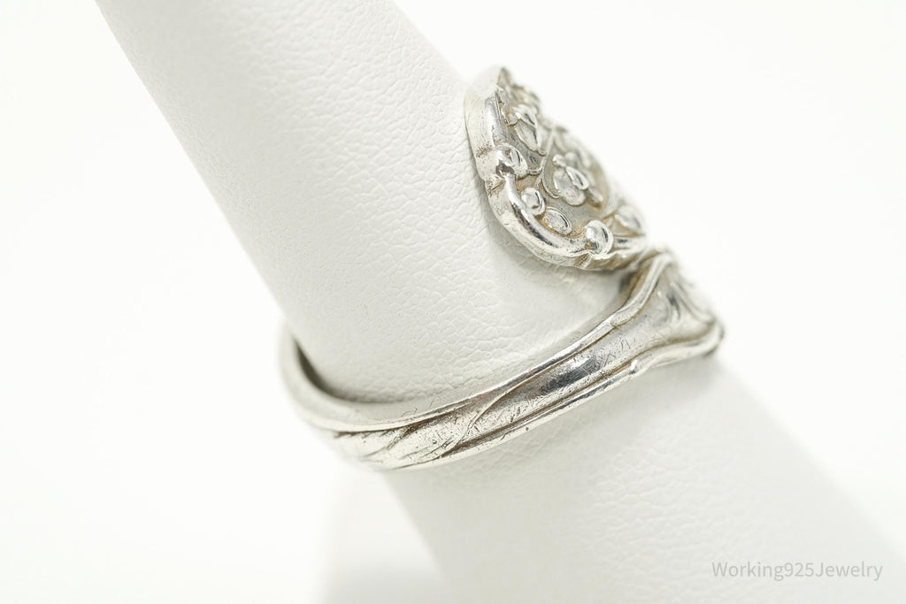 Antique GORHAM Flower Sterling Silver Wrap Spoon Ring - Size 7.25