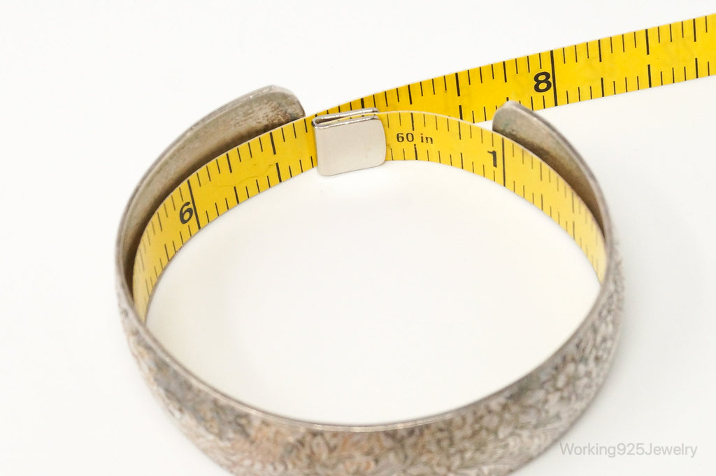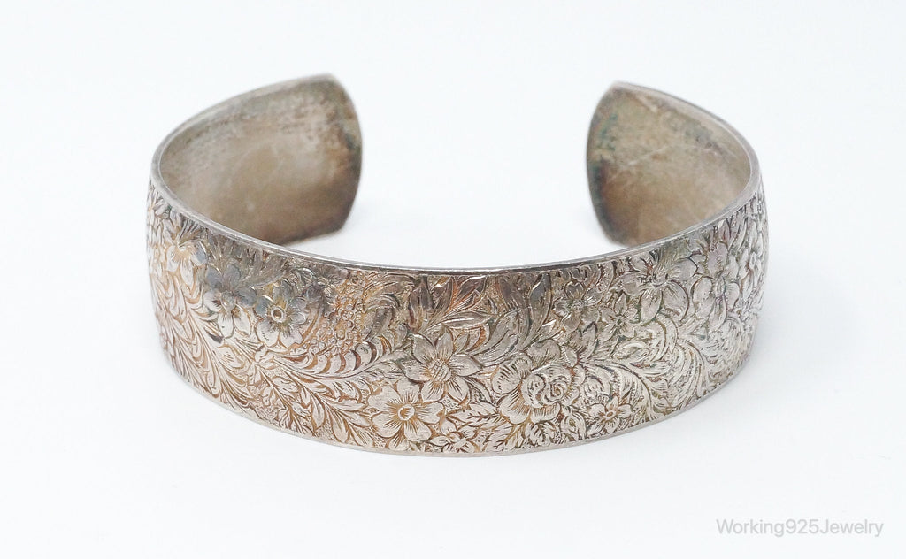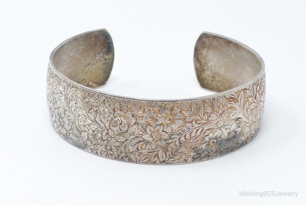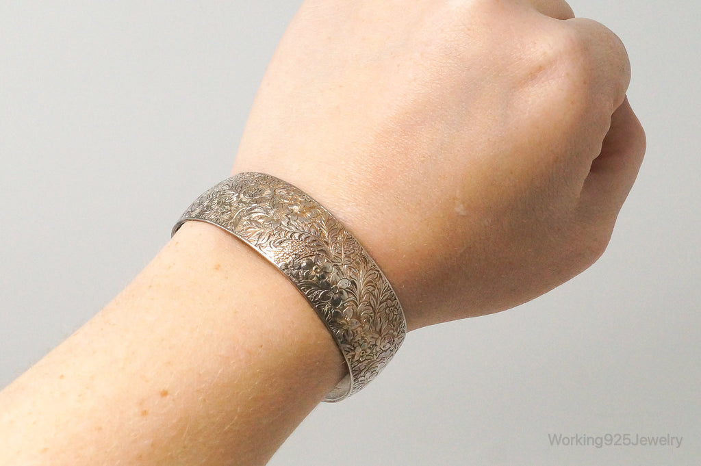 Antique Hayward Art Nouveau Etched Floral Sterling Silver Cuff Bracelet