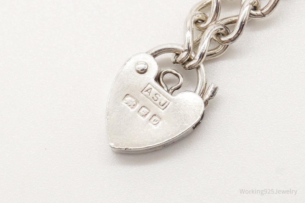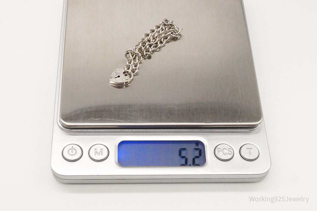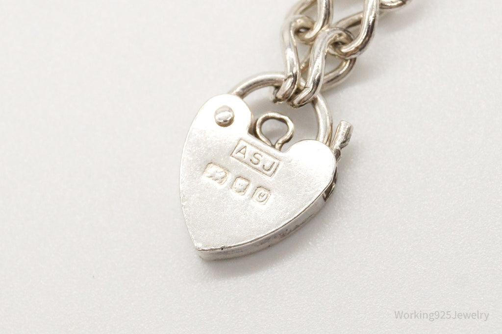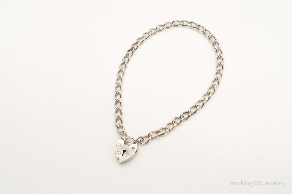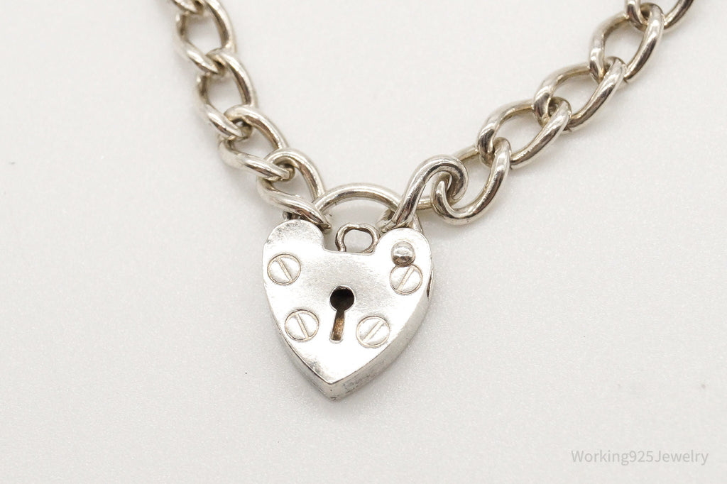 Antique Heart Lock Charm Lover Sterling Silver Chainlink Bracelet