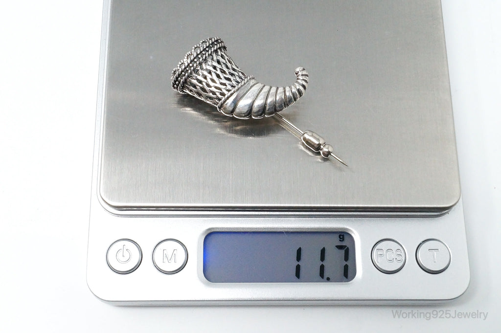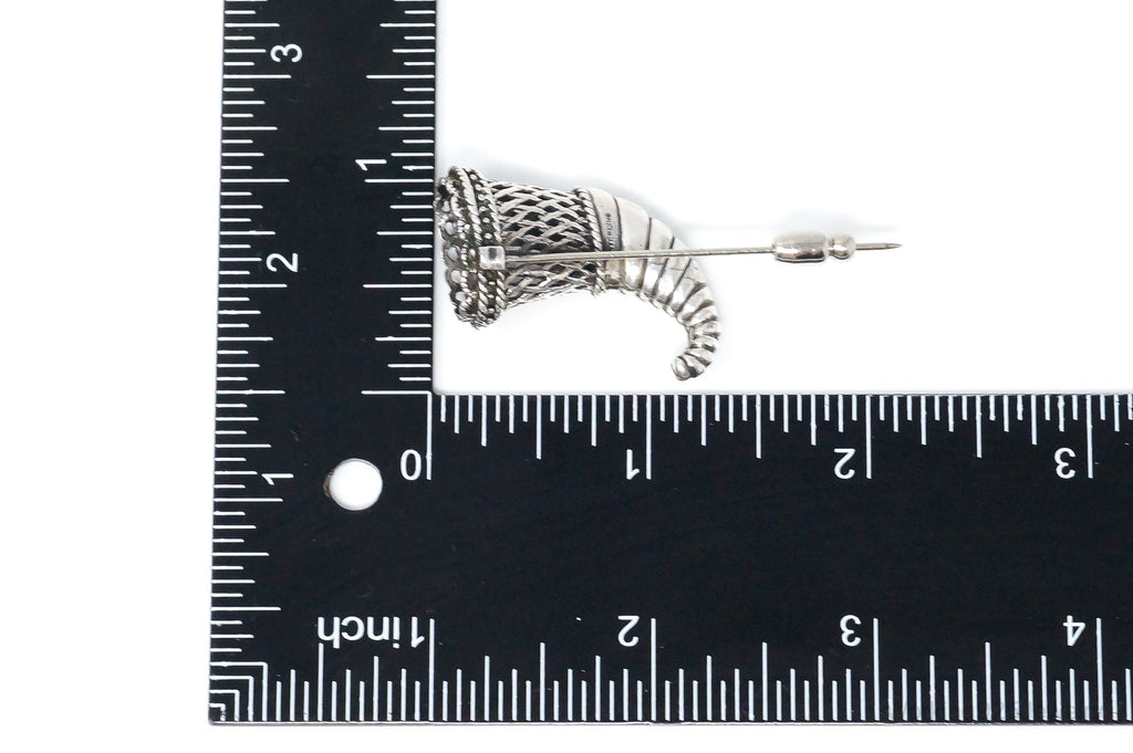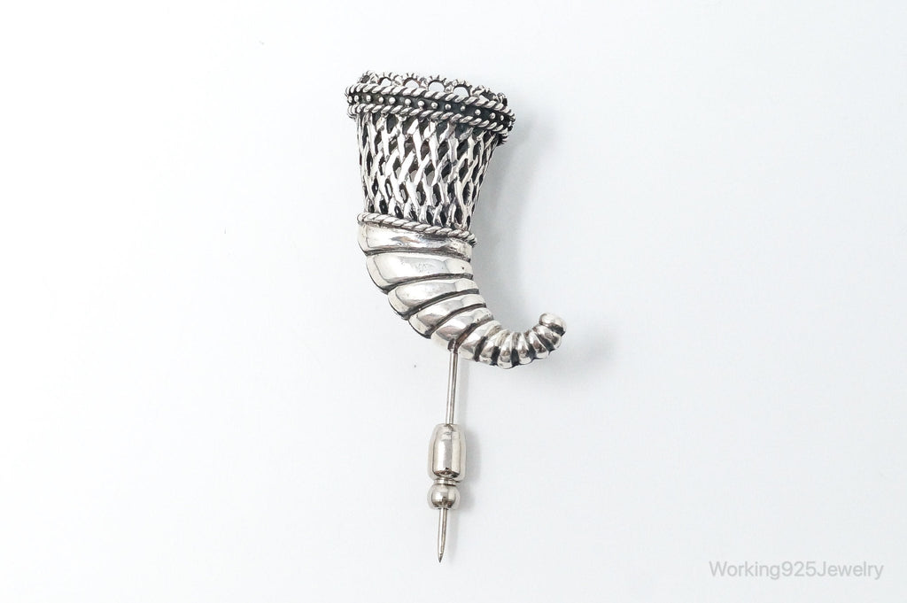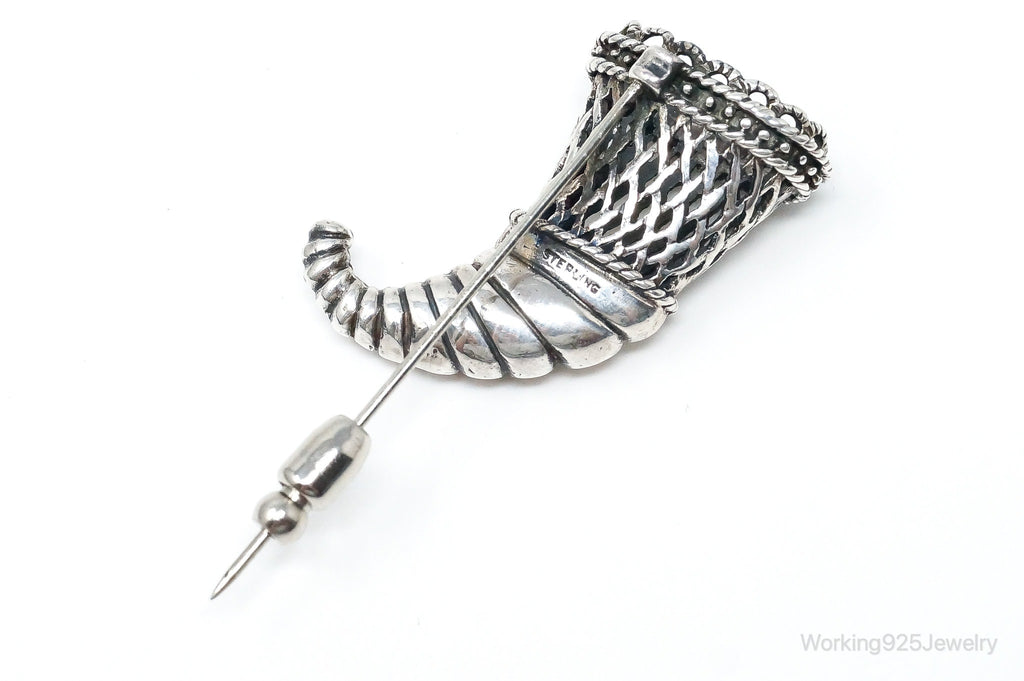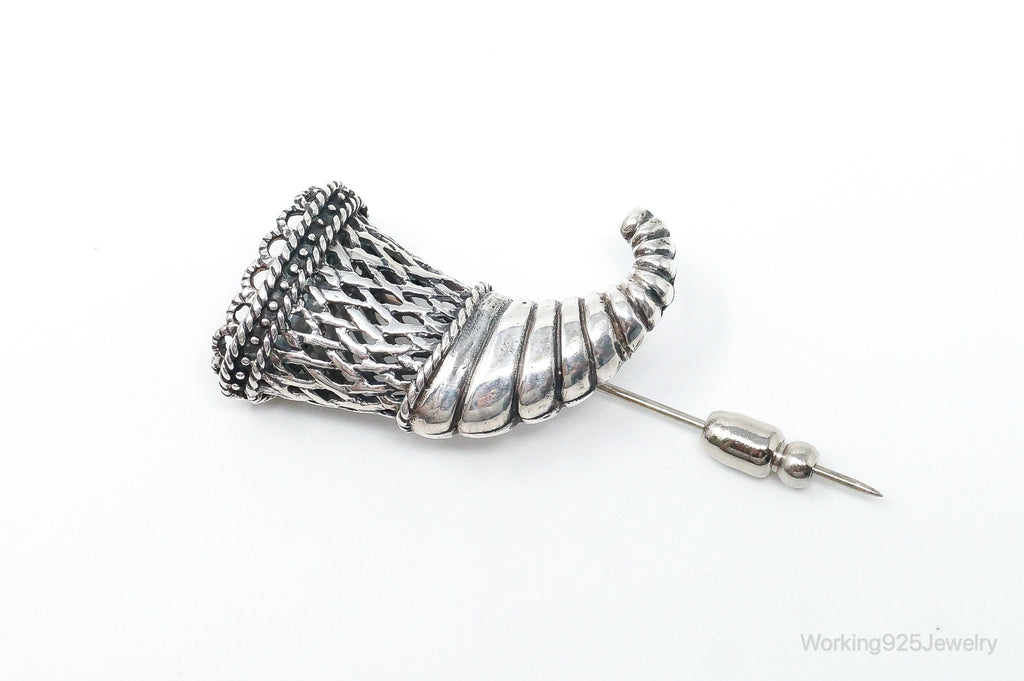 Antique Horn Of Plenty Sterling Silver Brooch Pin