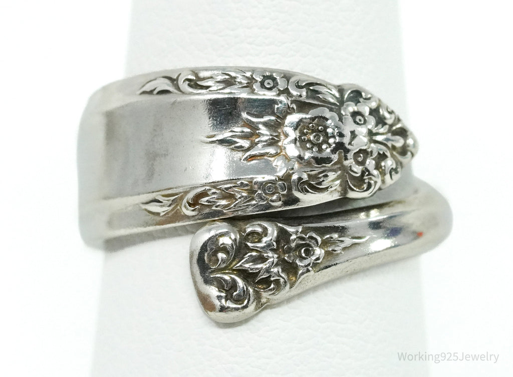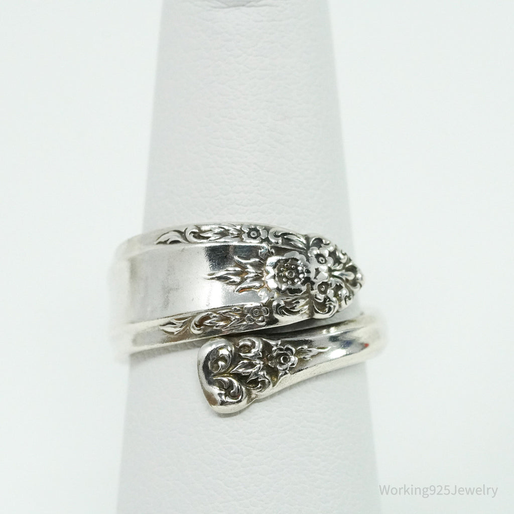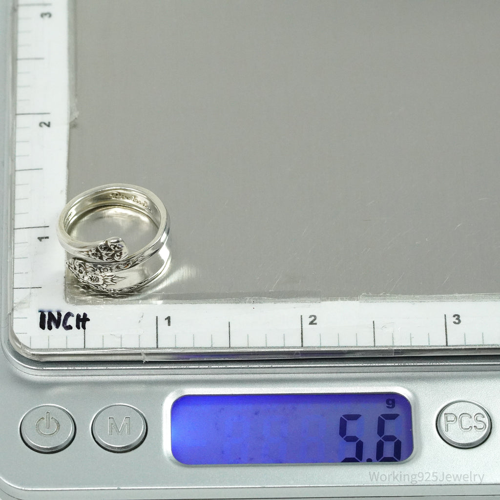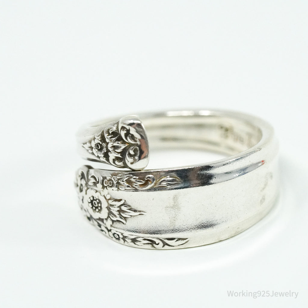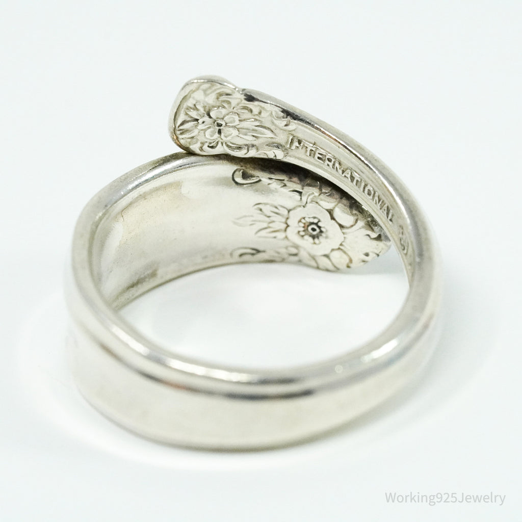 Antique International Sterling Silver Floral Spoon Ring Size 6.5
