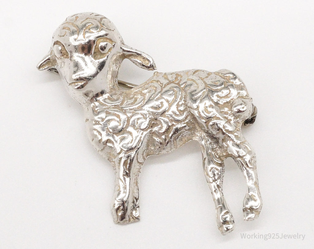 Antique Lamb Sheep Sterling Silver Brooch Pin