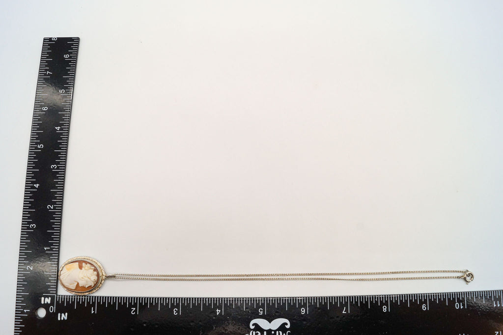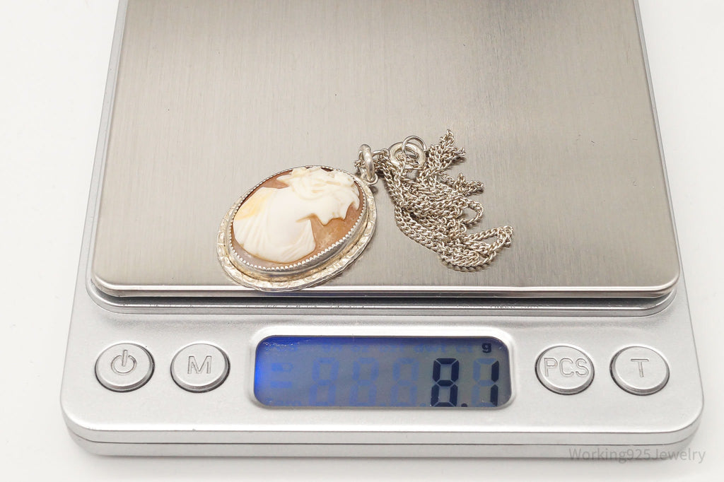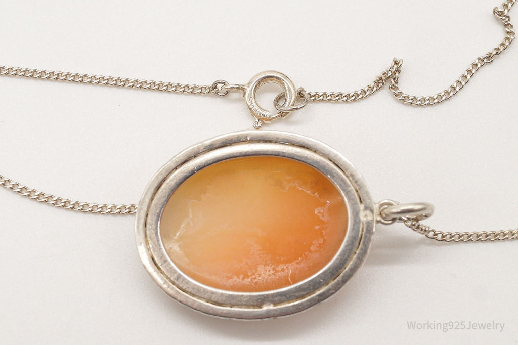 Antique Large Carved Shell Woman Cameo Sterling Silver Necklace