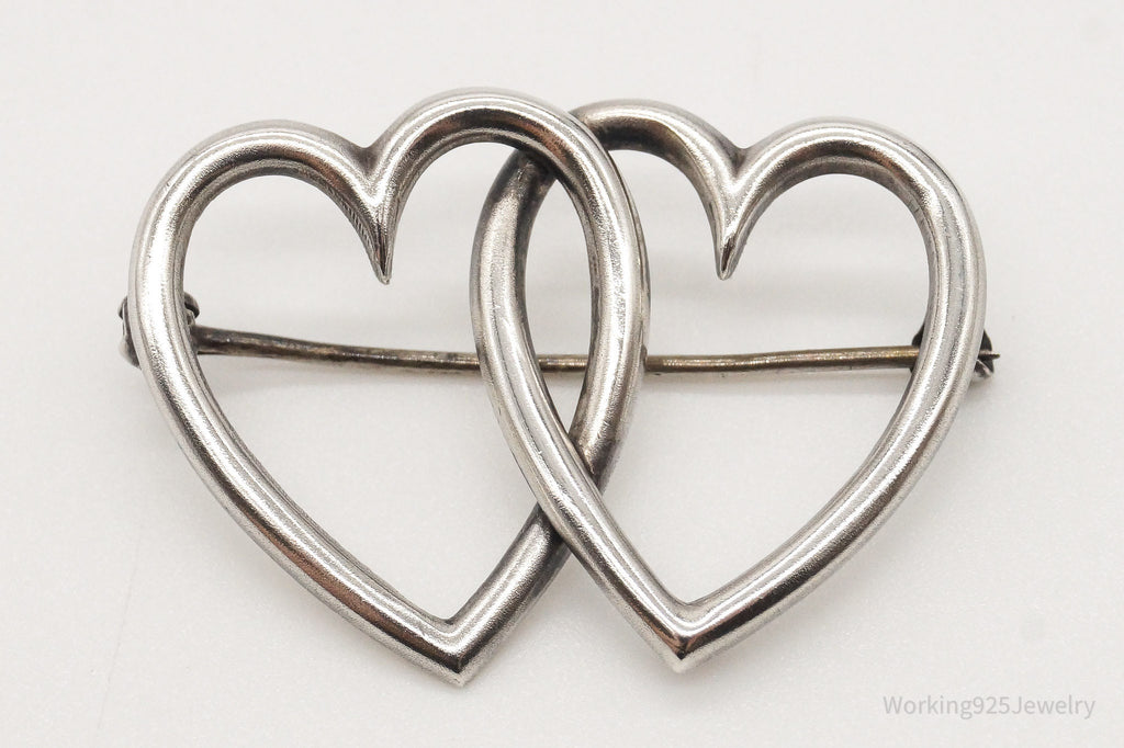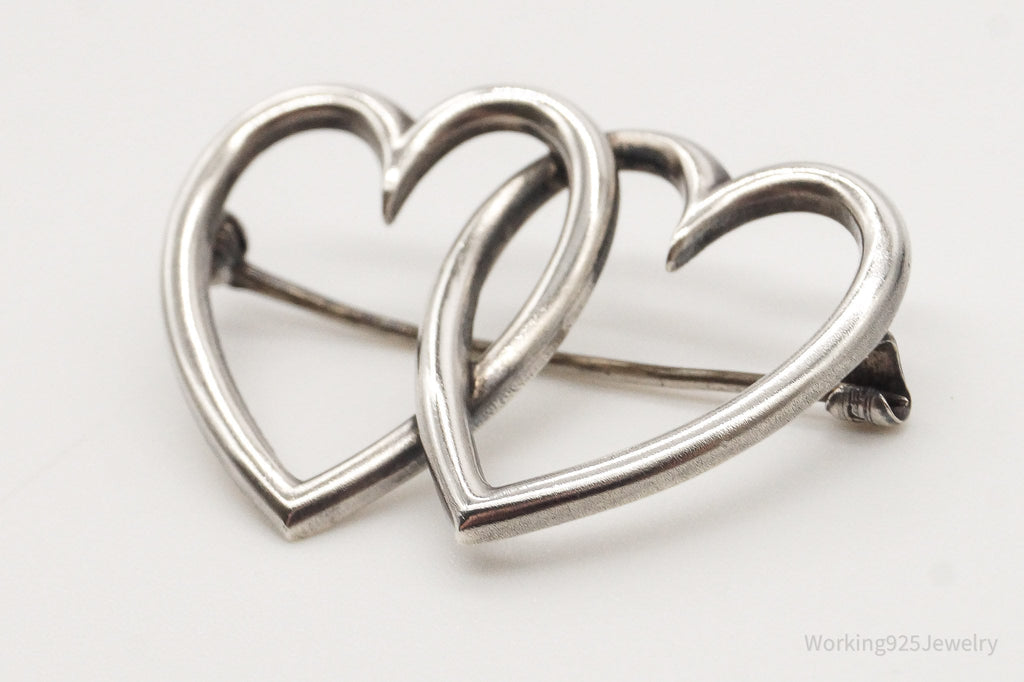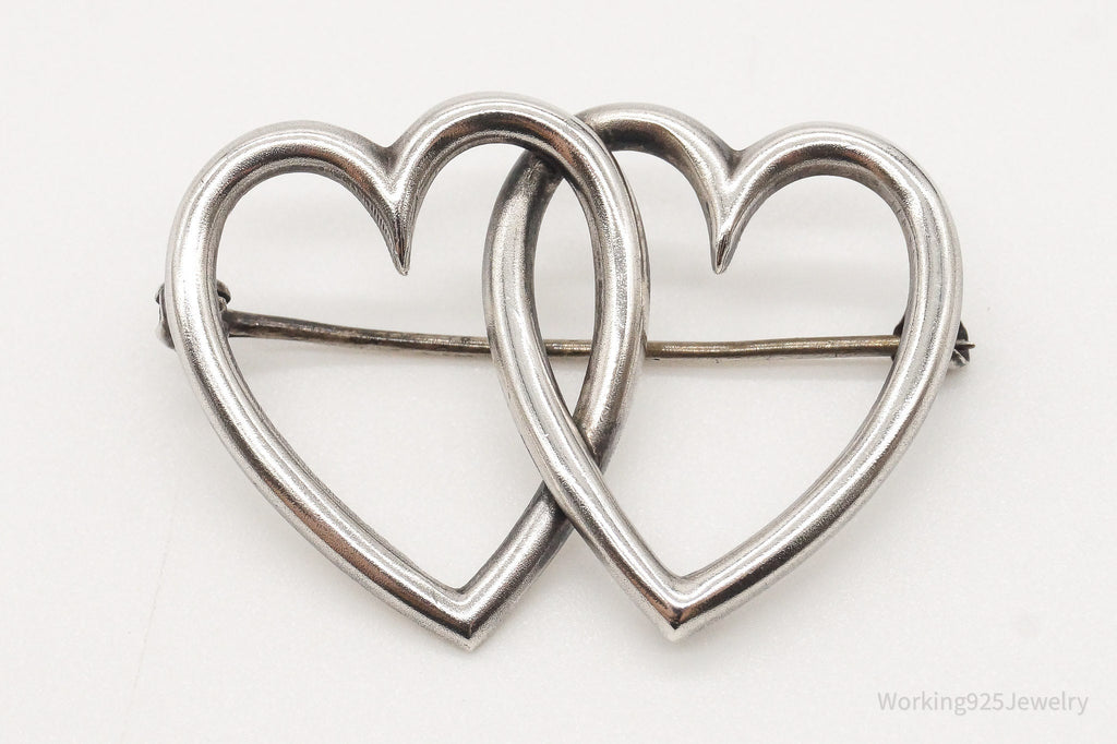 Antique Linked Hearts Sterling Silver Brooch Pin