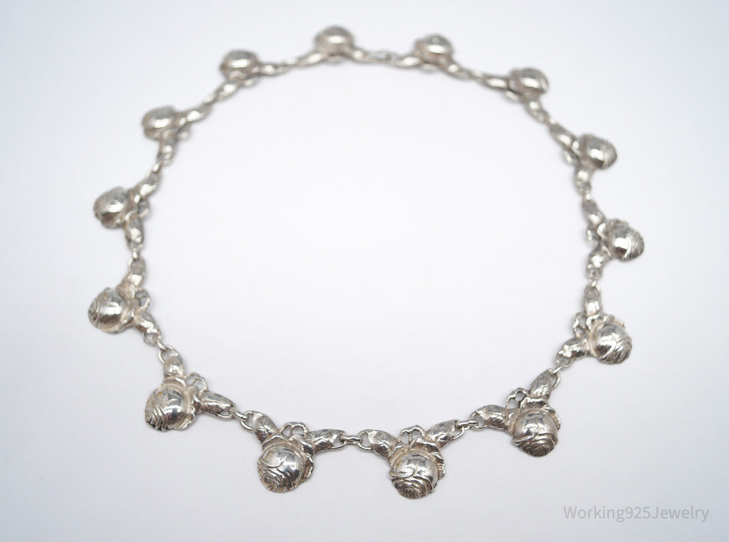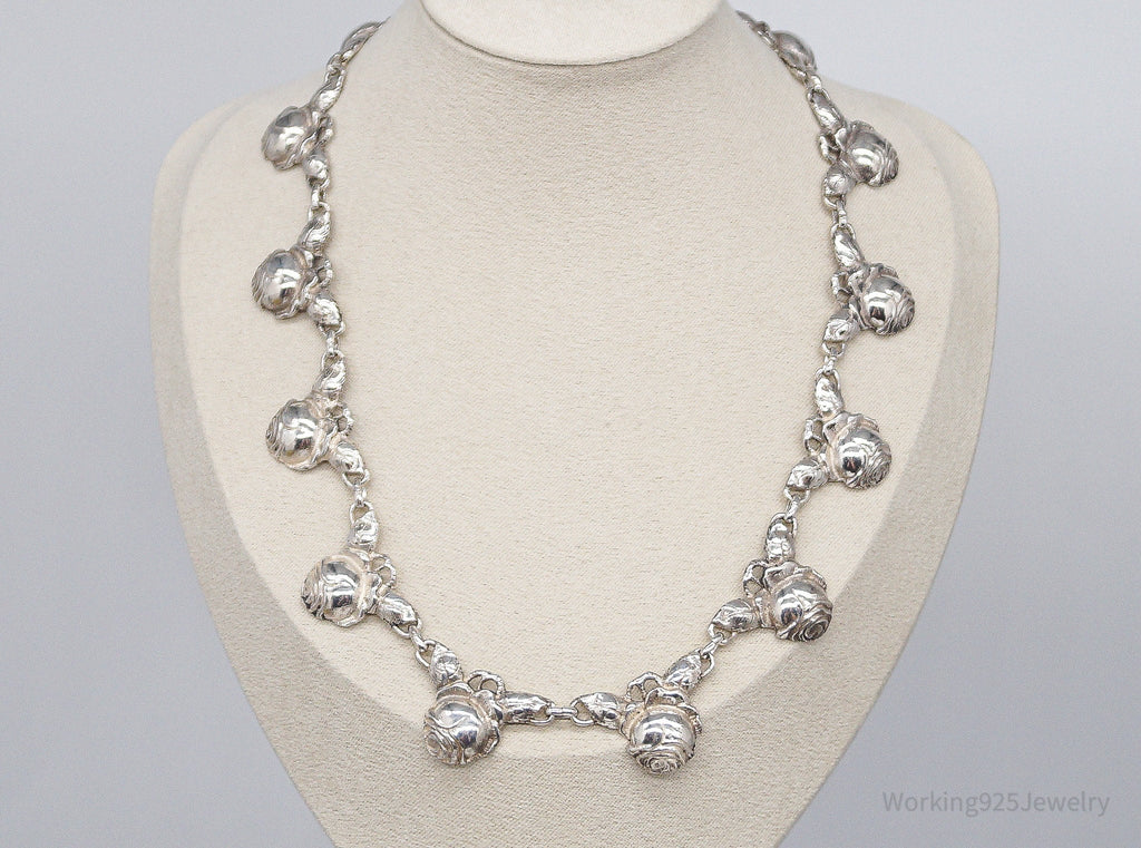 Antique Linked Roses 800 Silver Necklace 16"