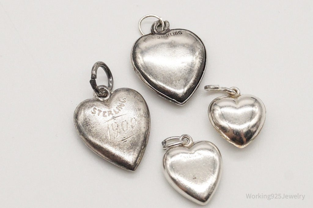 Antique Love Puffy Hearts Sterling Silver Charms Set Lot