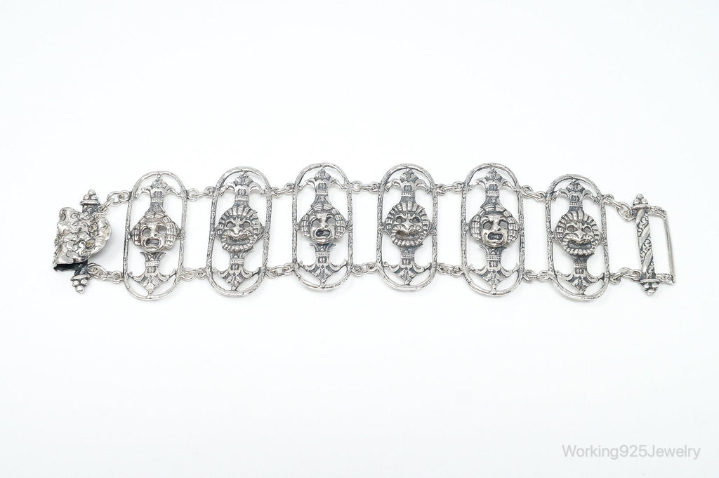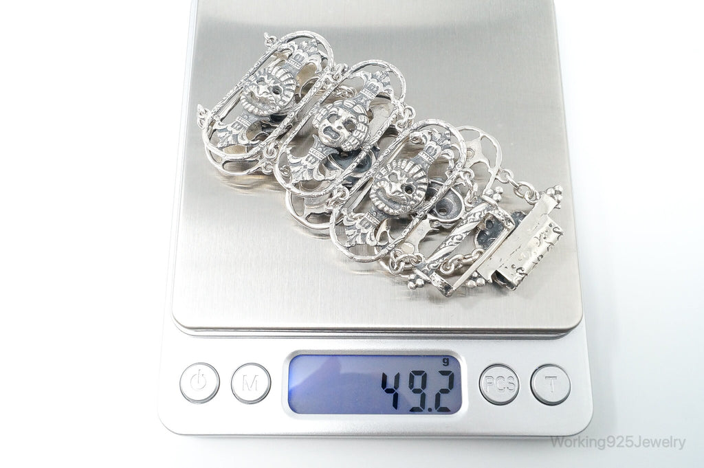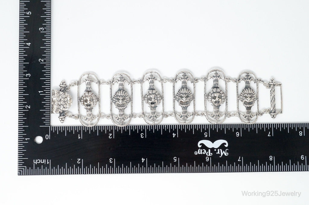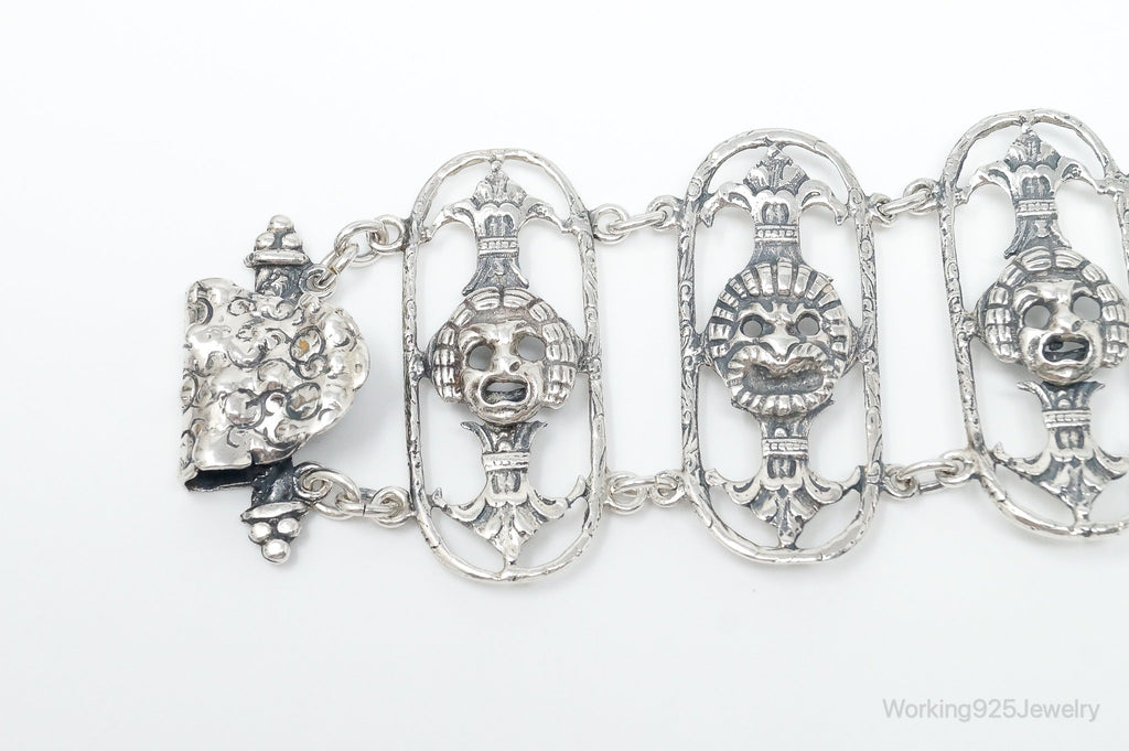 Antique Mask Sterling Silver Panel Bracelet
