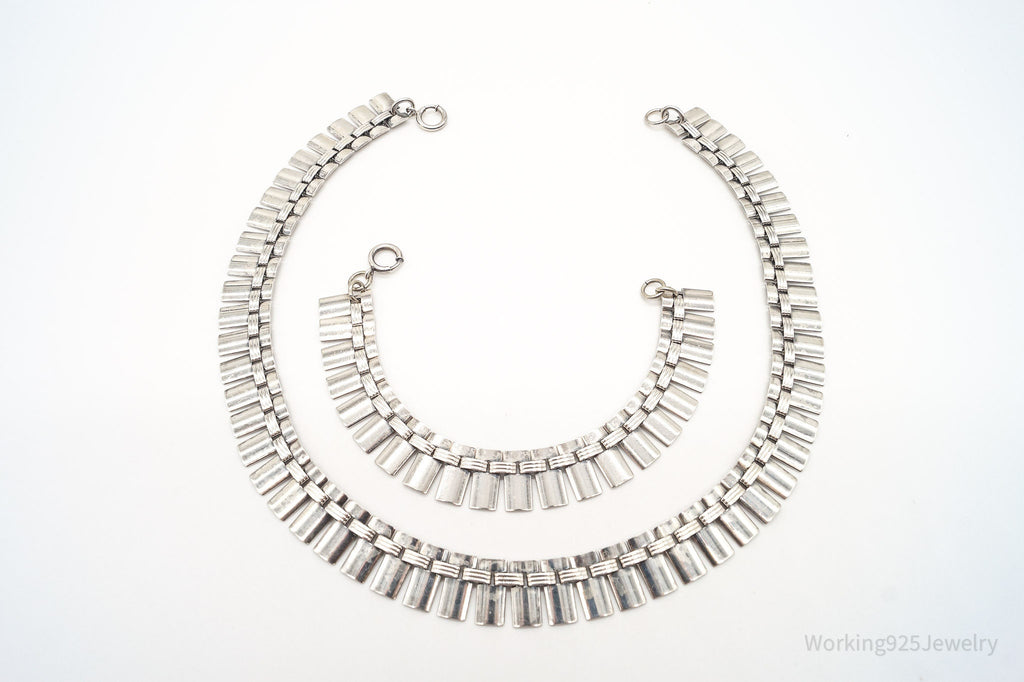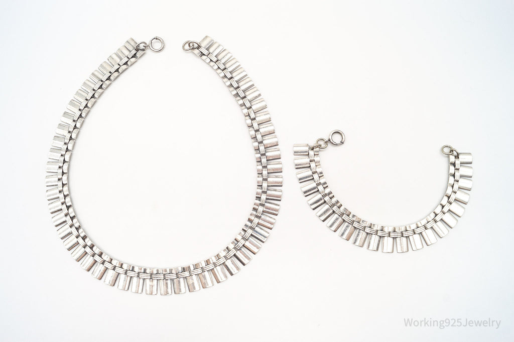 Antique Modernist Link Sterling Silver Necklace & Bracelet Set