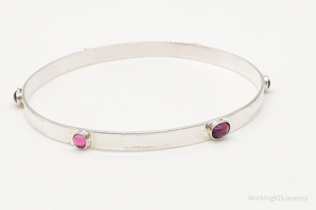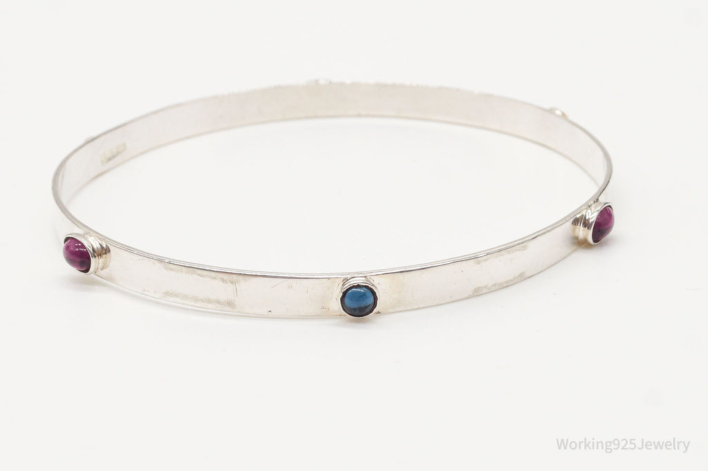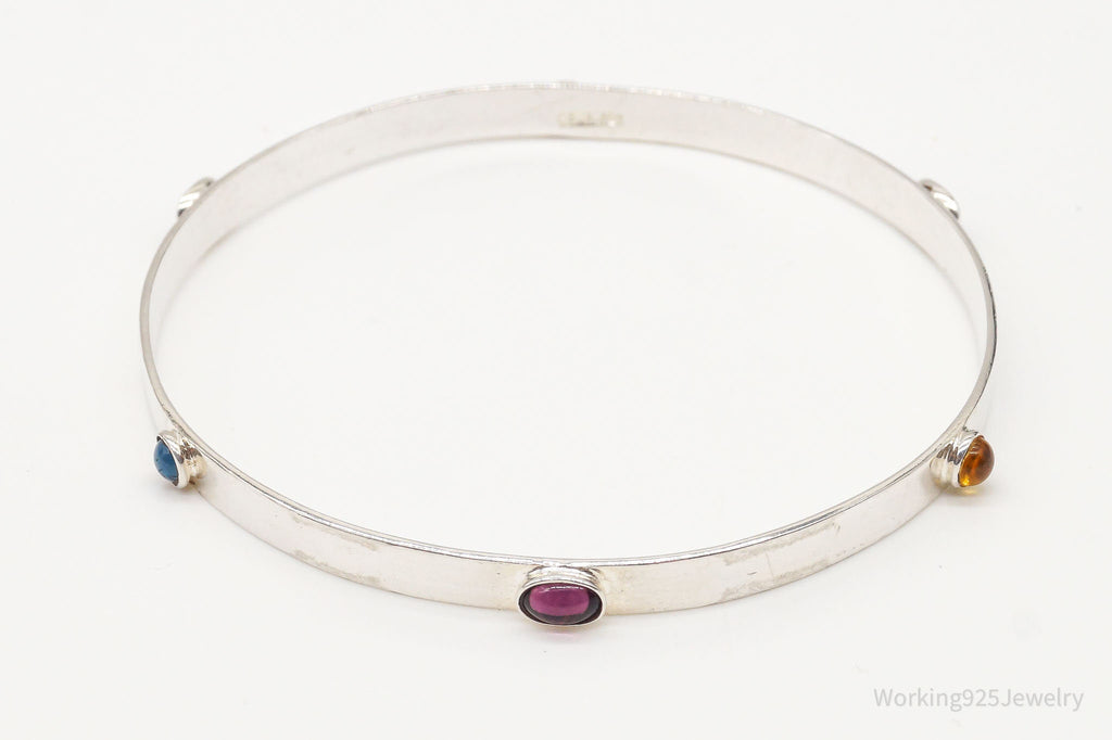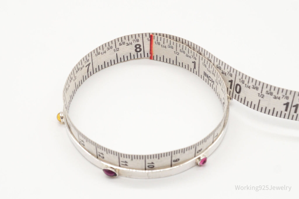 Antique Multi Color Glass Sterling Silver Bangle Bracelet