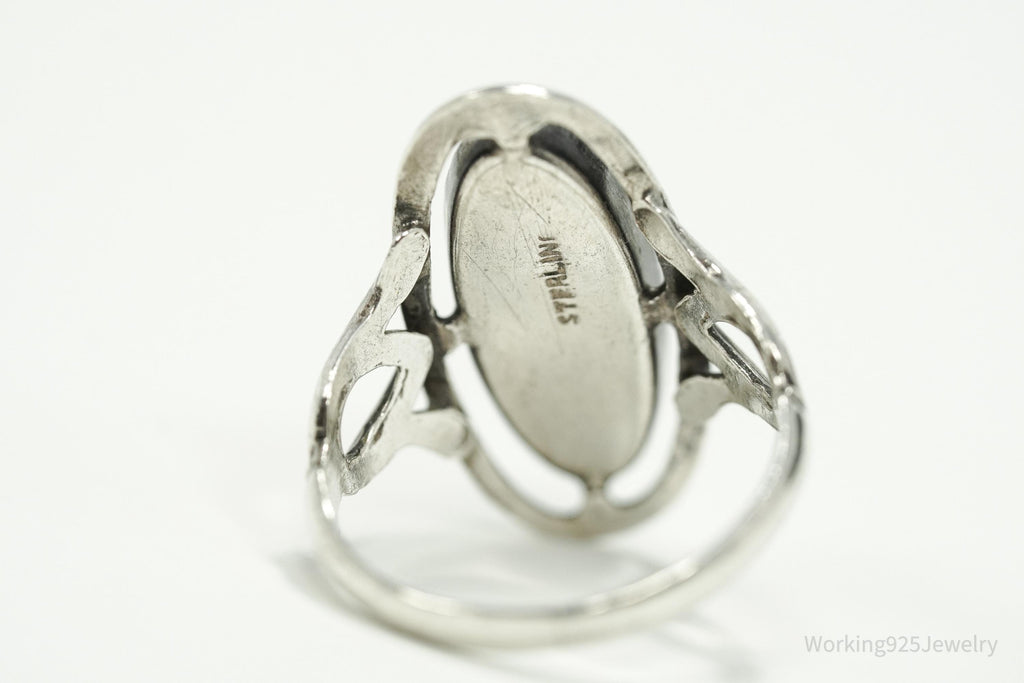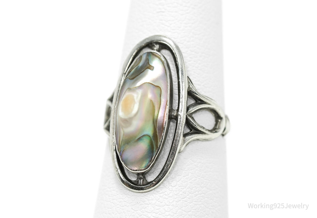 Antique Paua Abalone Shell Sterling Silver Ring - Size 5.25