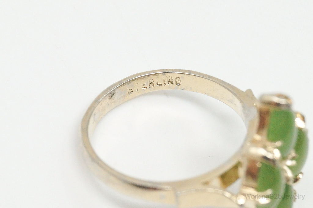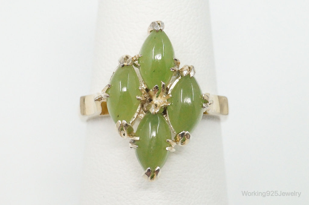 Antique Prehnite Art Deco Gold Vermeil Sterling Silver Ring - Size 5.75
