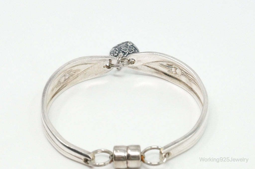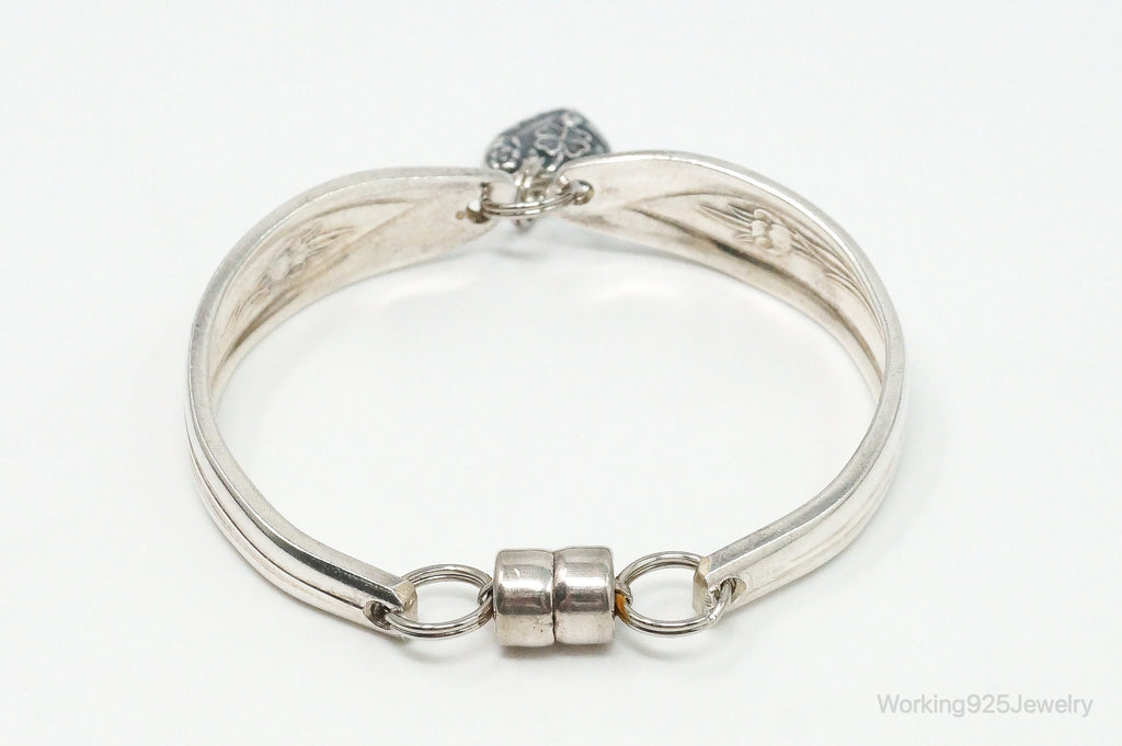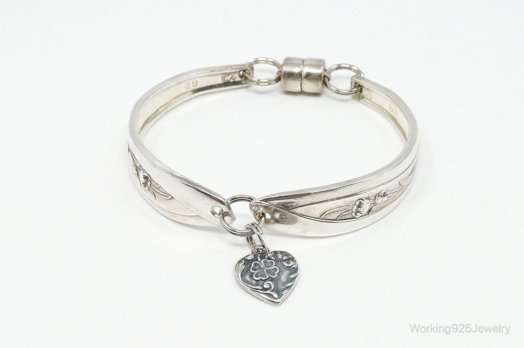 Antique Puffy Heart Charm Spoon Sterling Silver Magnetic Bracelet