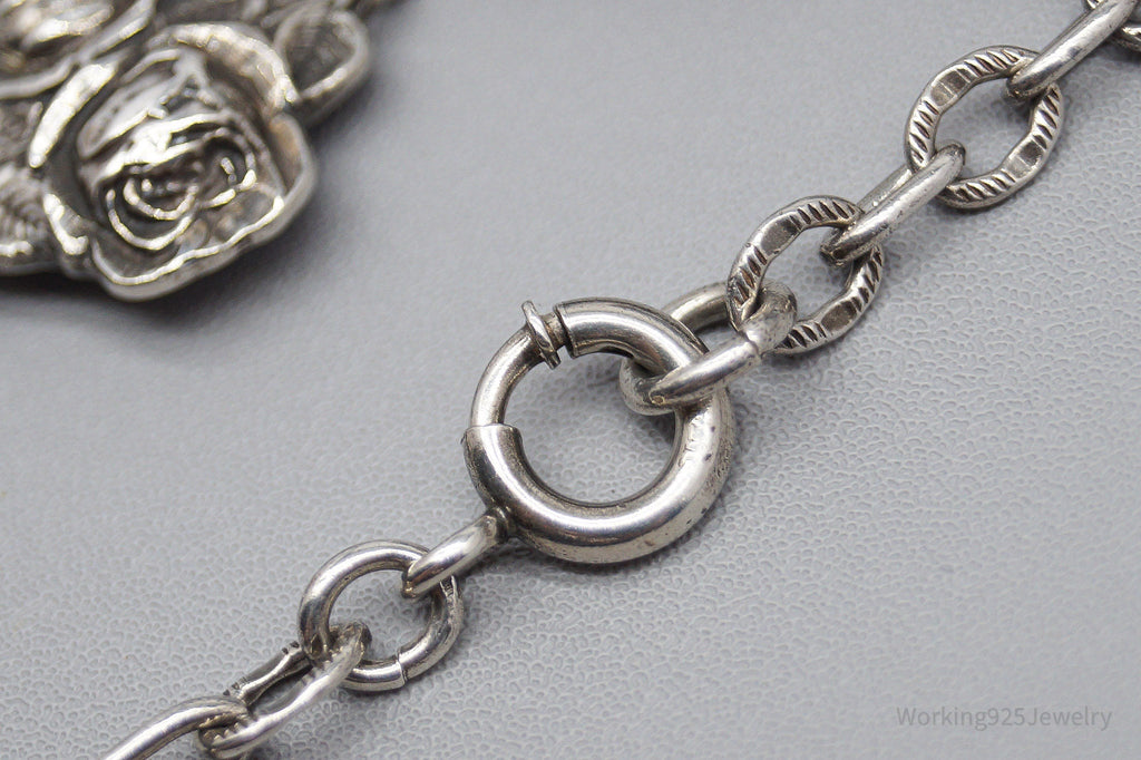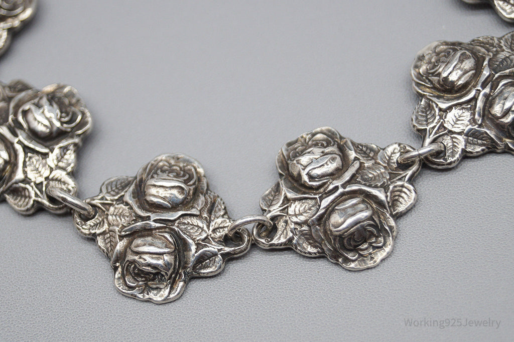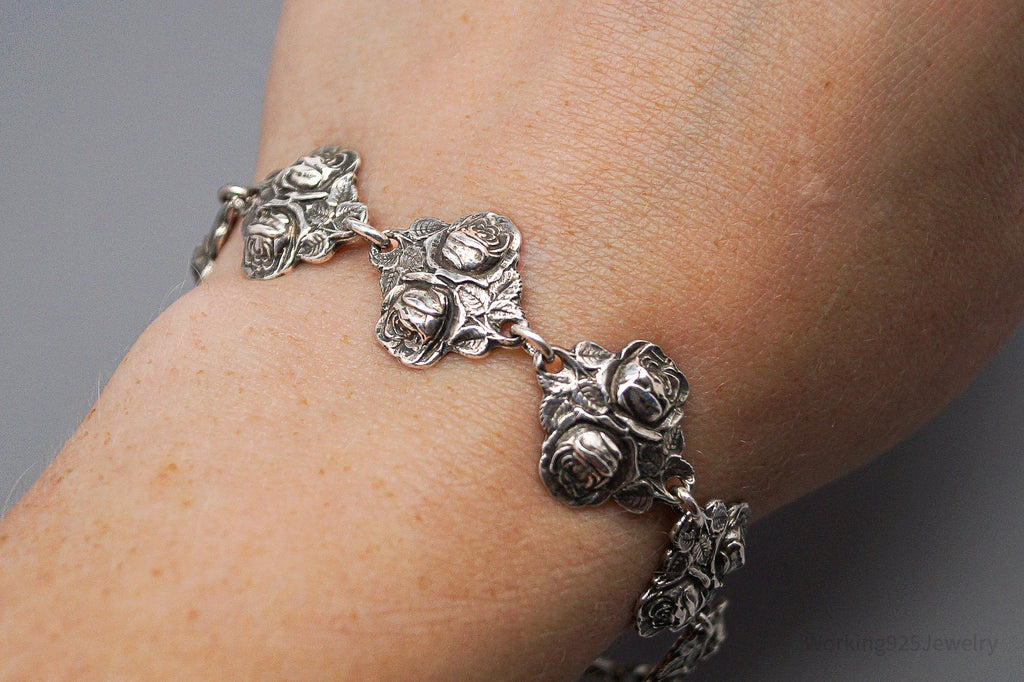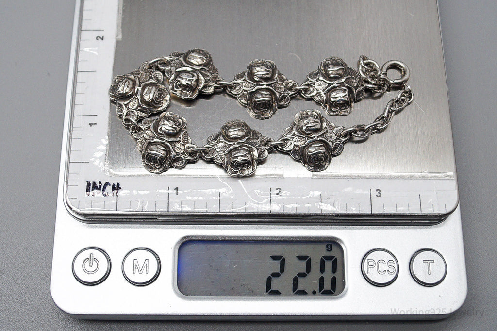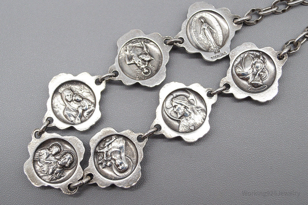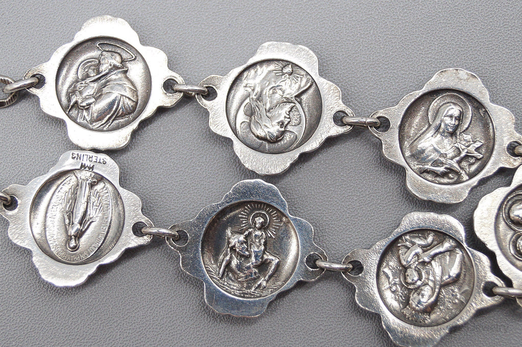 Antique Rosary Roses Mary & Saints Sterling Silver Bracelet - 7 7/8"
