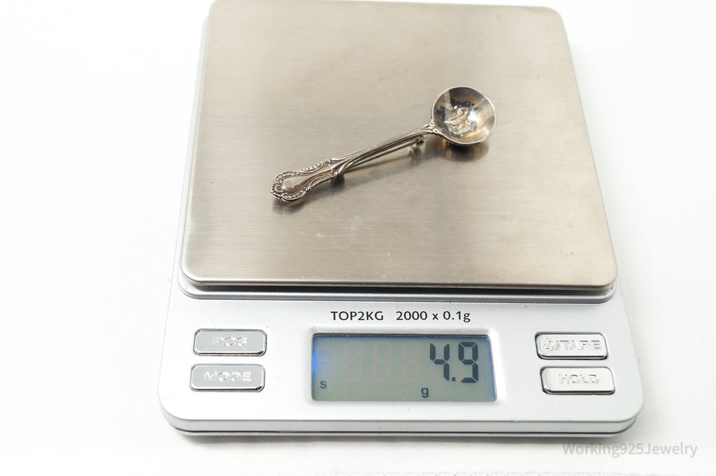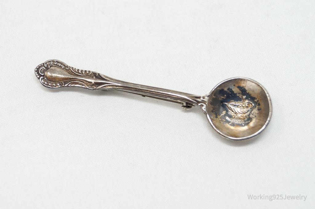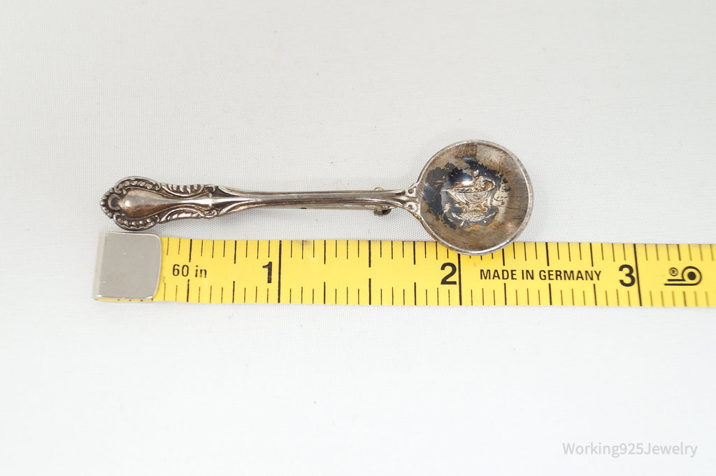 Antique Southern Colonial Fine Arts Floral Spoon Sterling Silver Brooch Pin