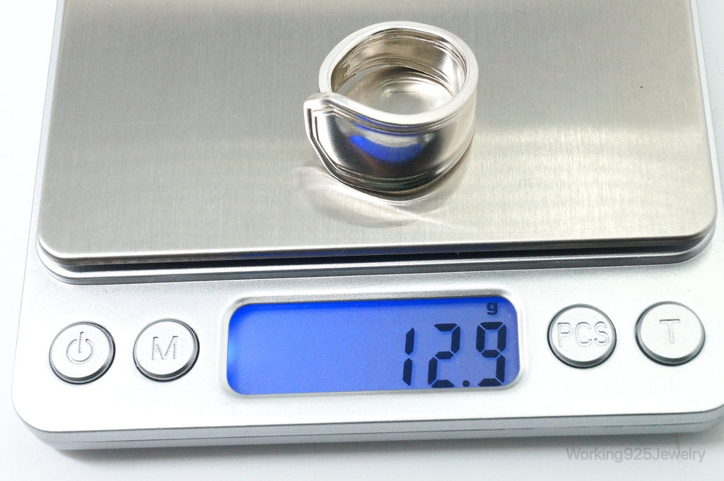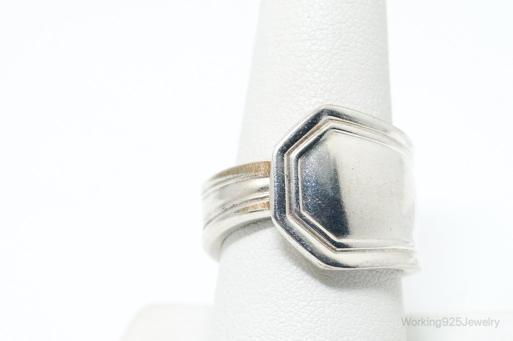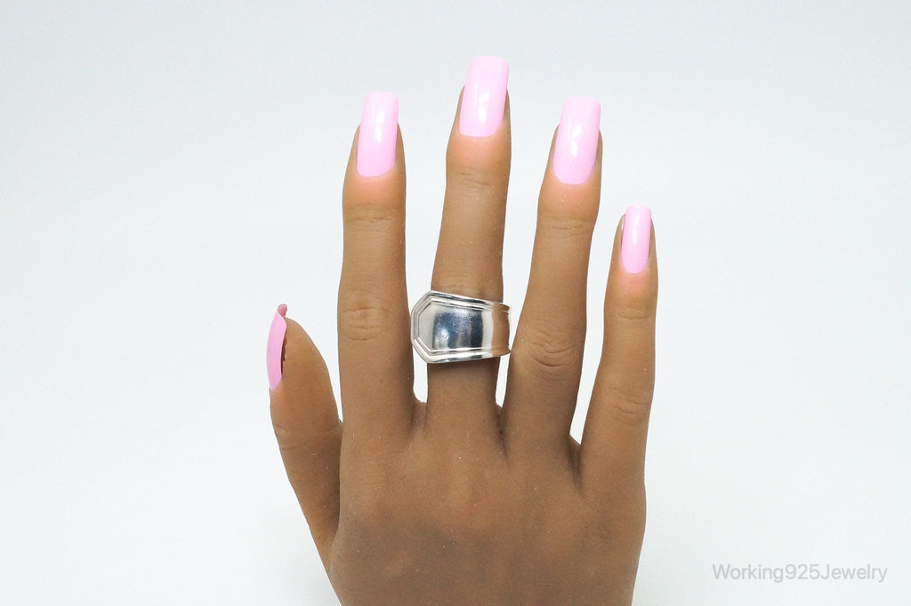 Antique Sterling Silver Art Deco Spoon Ring Adjustable - Size 8.5