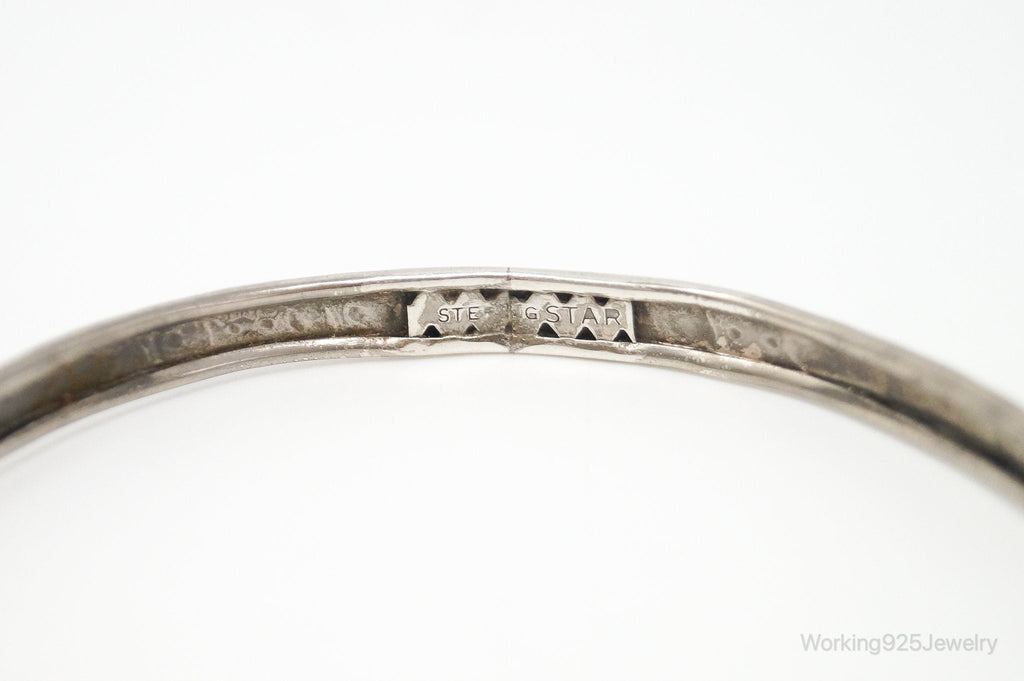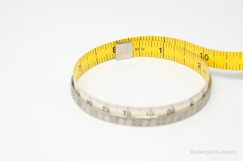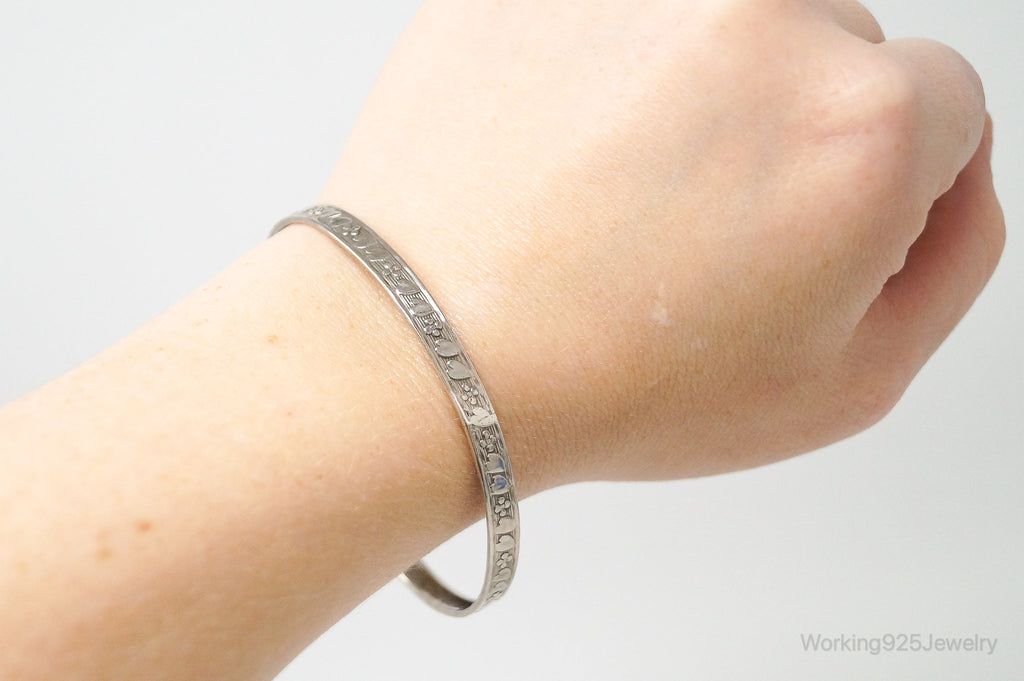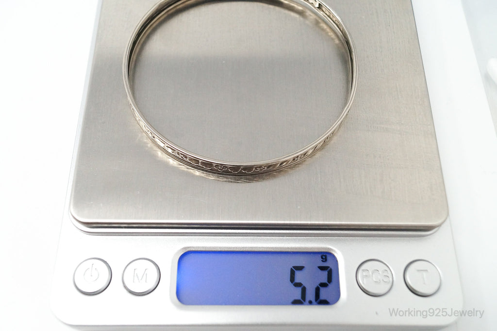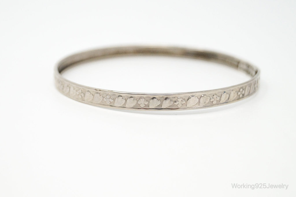 Antique Sterling Silver Heart Floral Bangle Bracelet