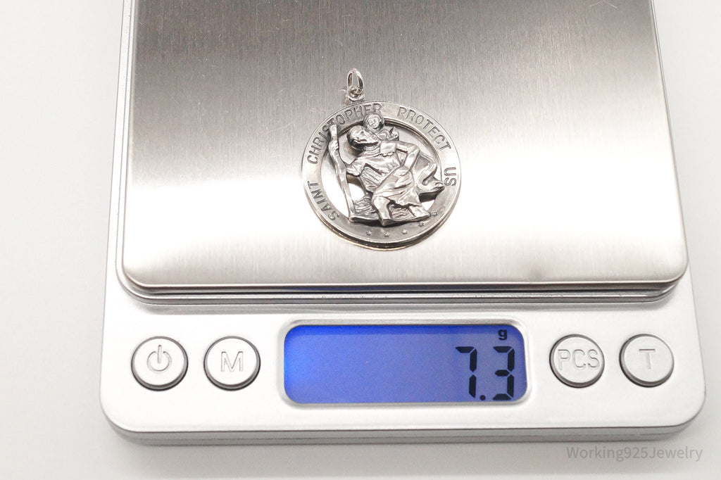 Antique Theda Saint Christopher Protect Us Sterling Silver Pendant