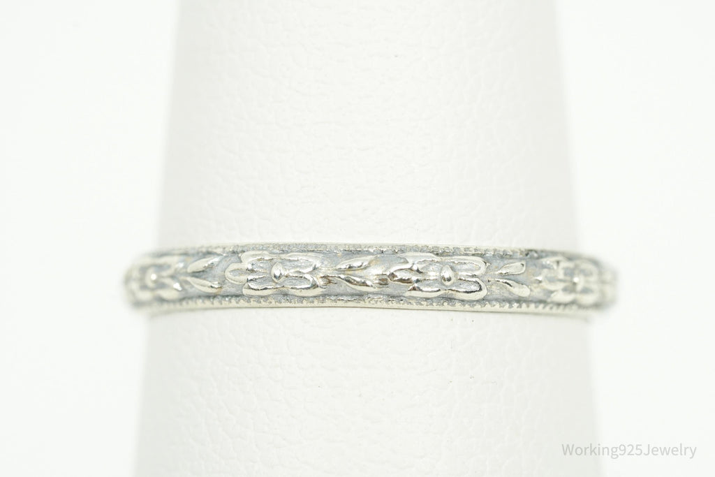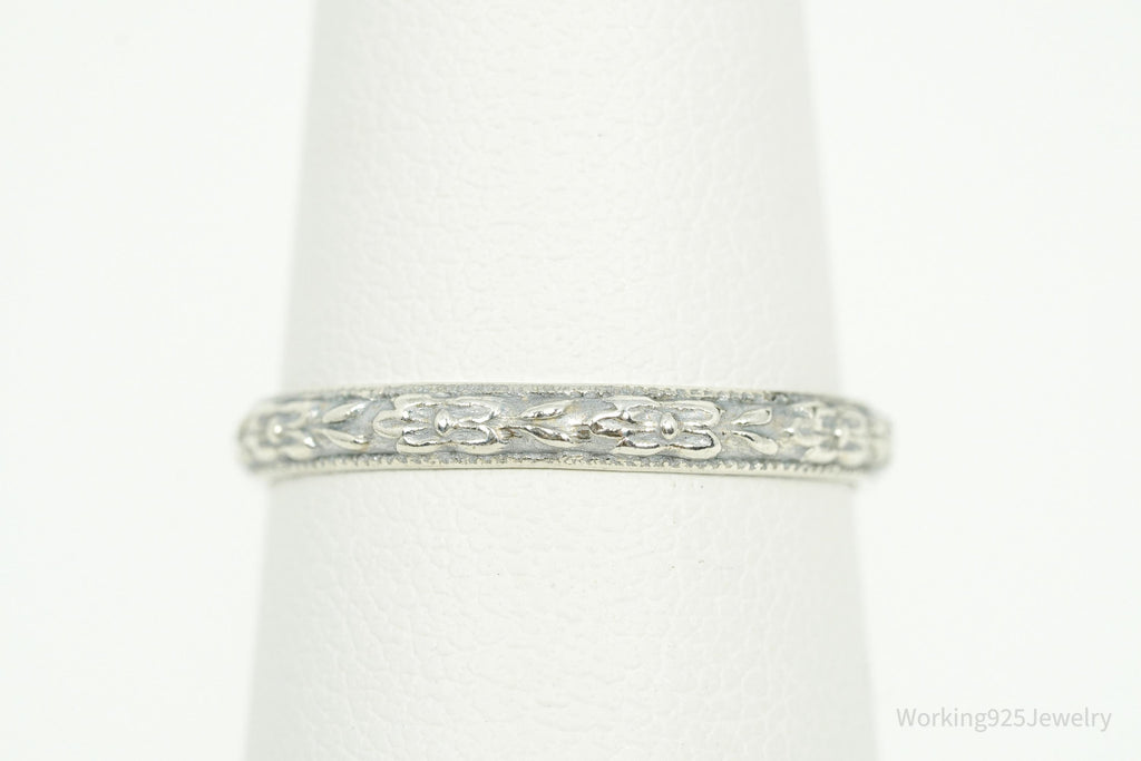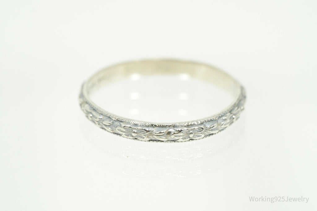 Antique Uncas MFG Co Flowers Pattern Sterling Silver Band Ring - Size 6.25