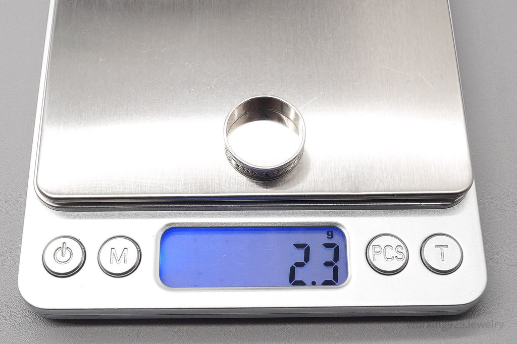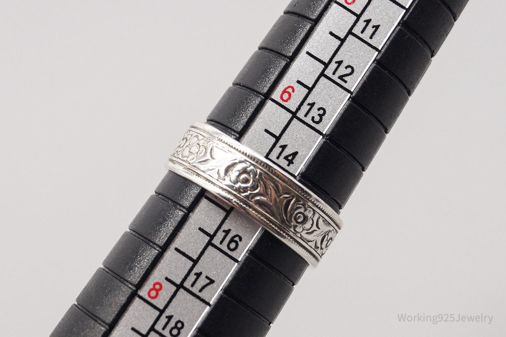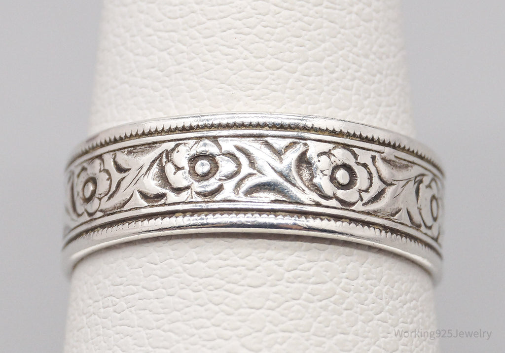 Antique Uncas Mfg. Co. Flowers Pattern Sterling Silver Band Ring - Size 6.75