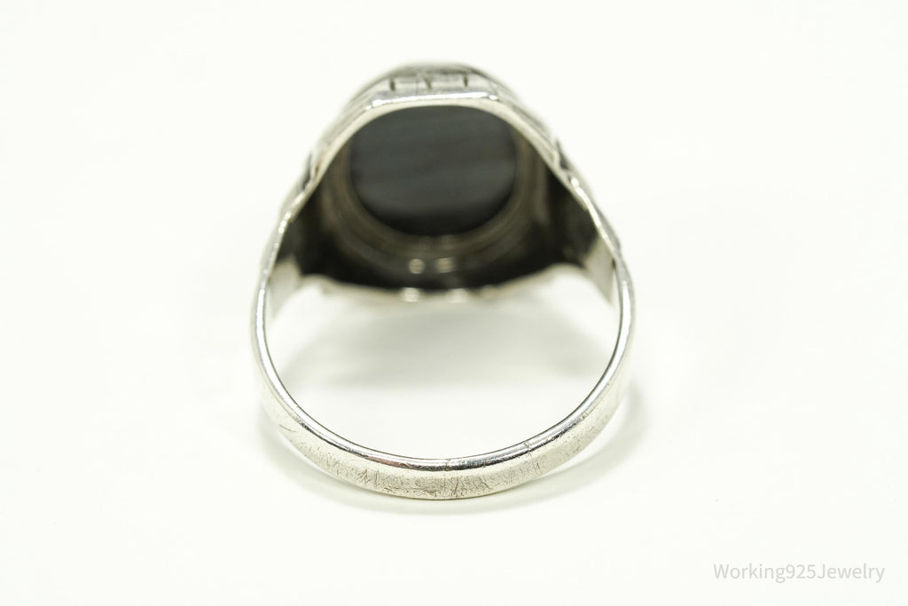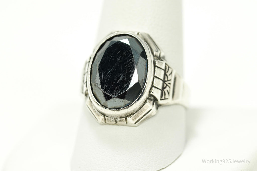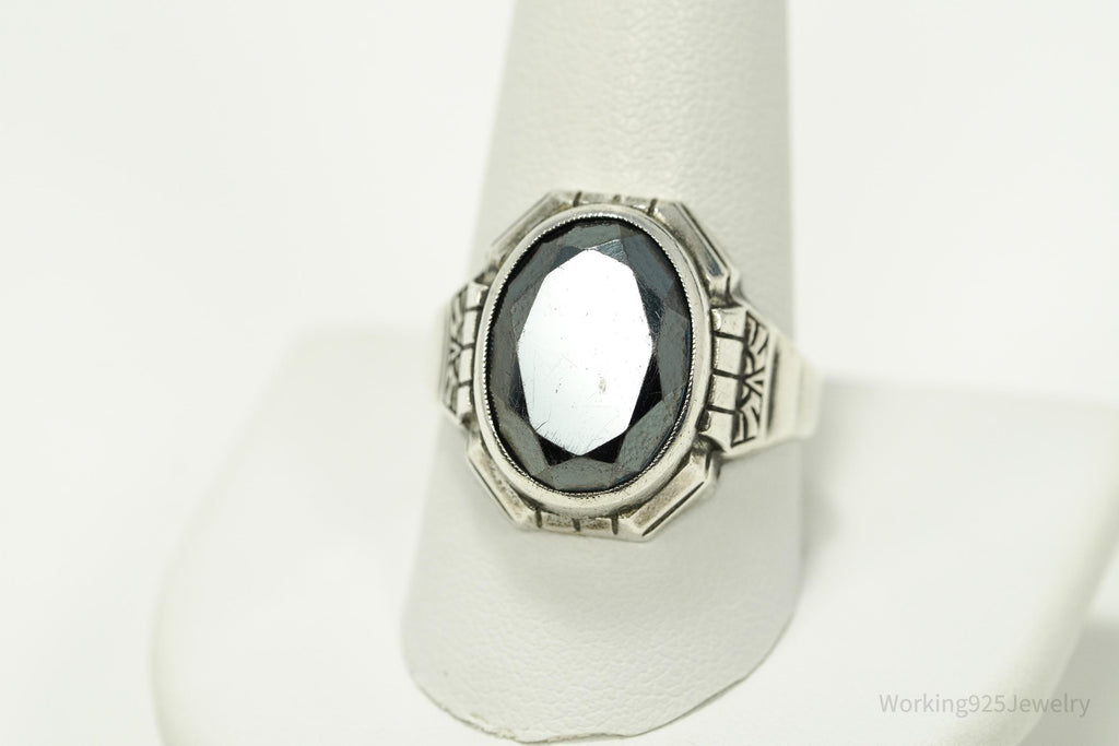 Antique Uncas MFG CO Hematite Sterling Silver Ring Size 10.75