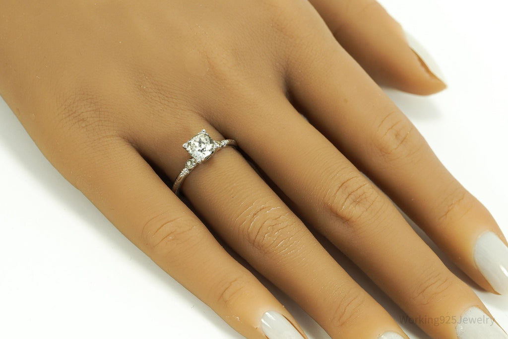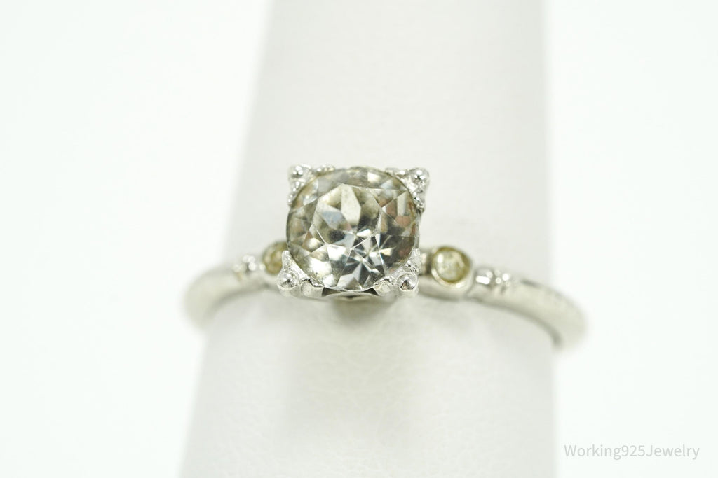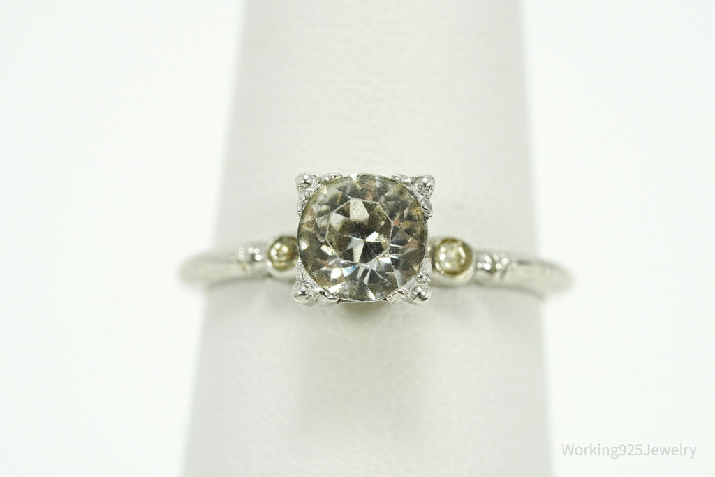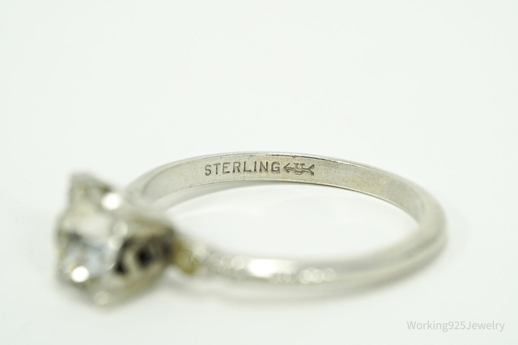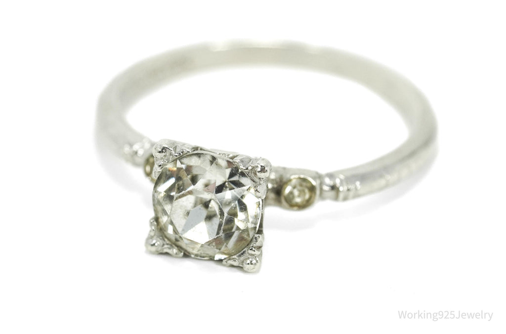 Antique Uncas MFG Co Rhinestone Sterling Silver Ring - Size 6.75