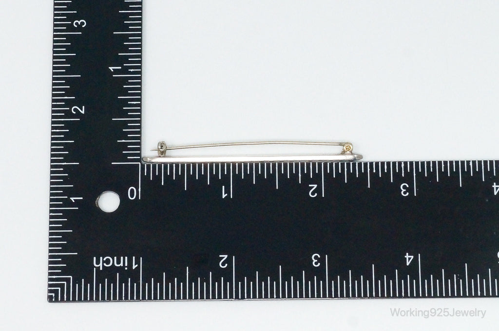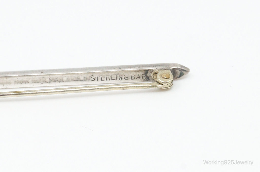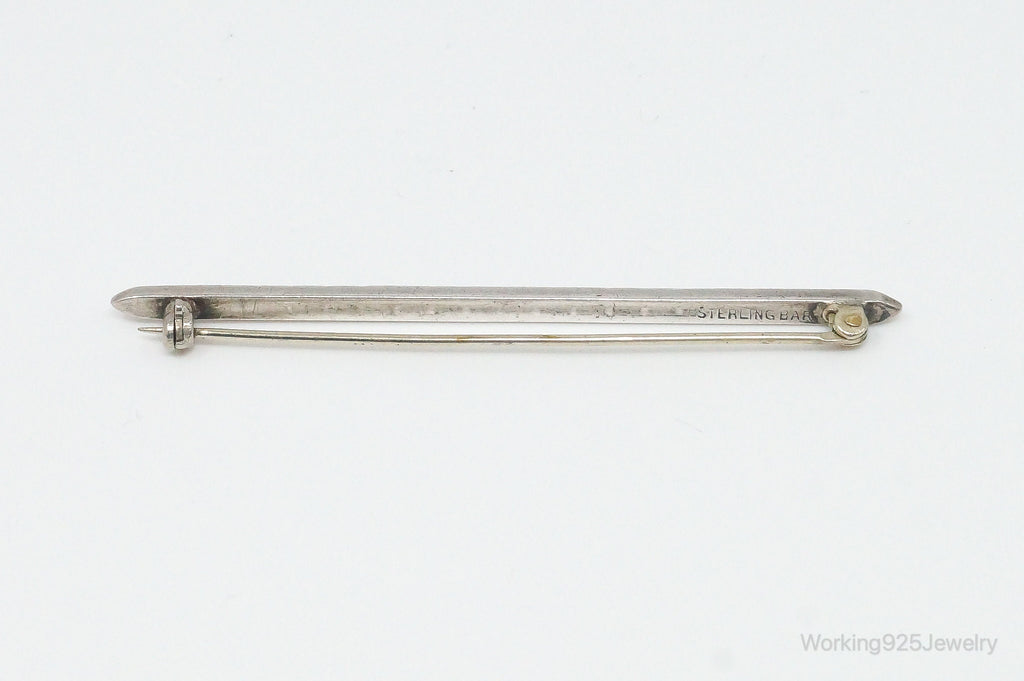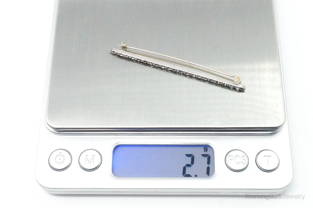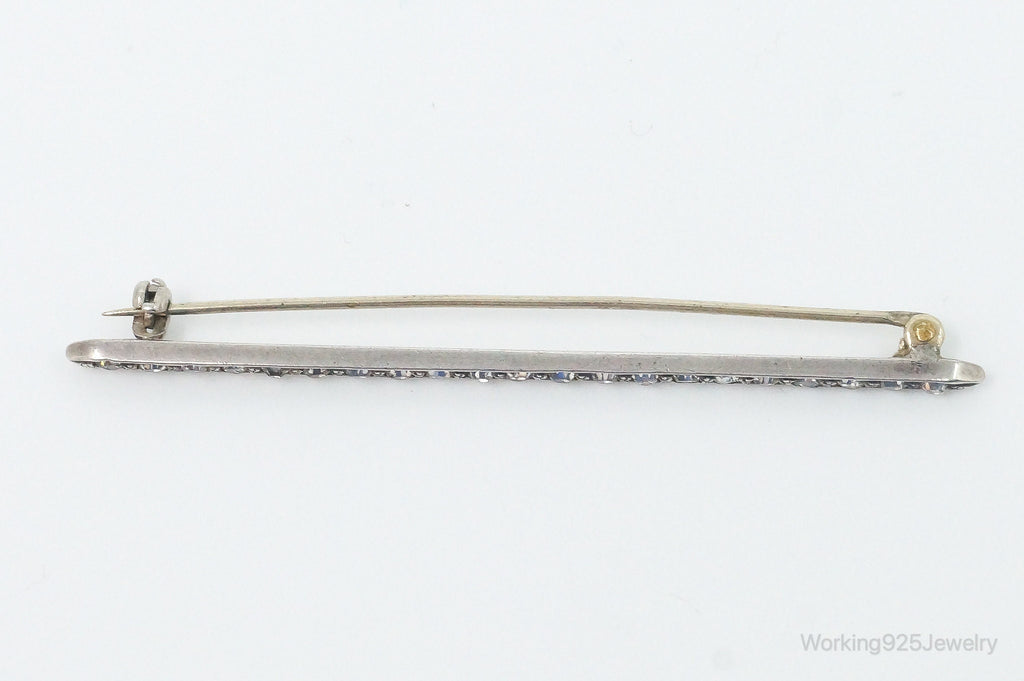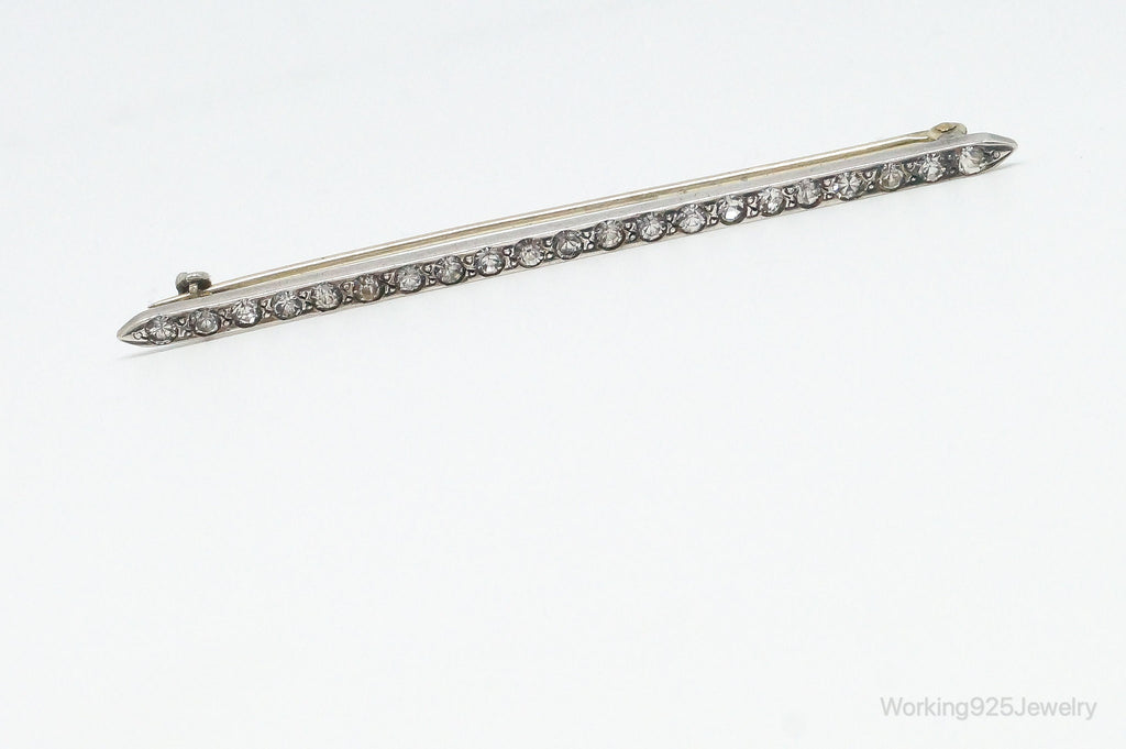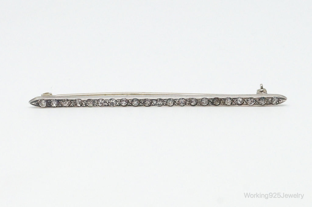 Antique Victorian Clear French Paste Stones Sterling Silver Brooch Pin Bar