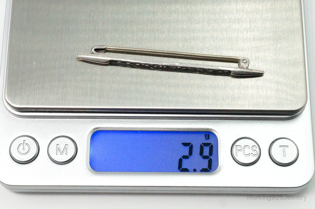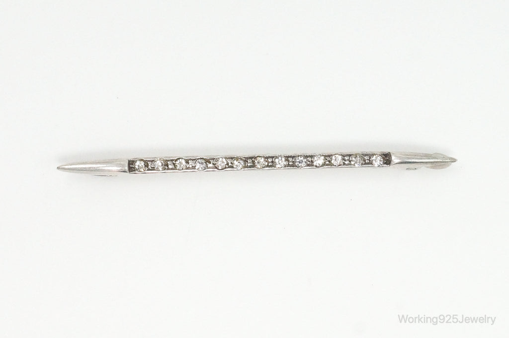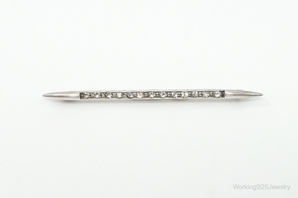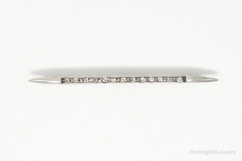 Antique Victorian Rhinestone Sterling Silver Brooch Pin Bar